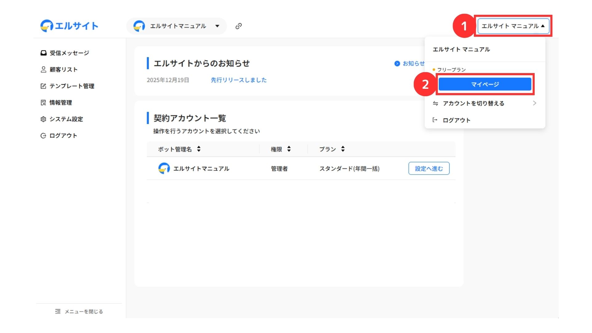 ②マイページを選択