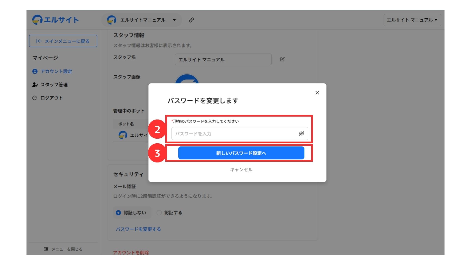 ②スタッフ名を入力