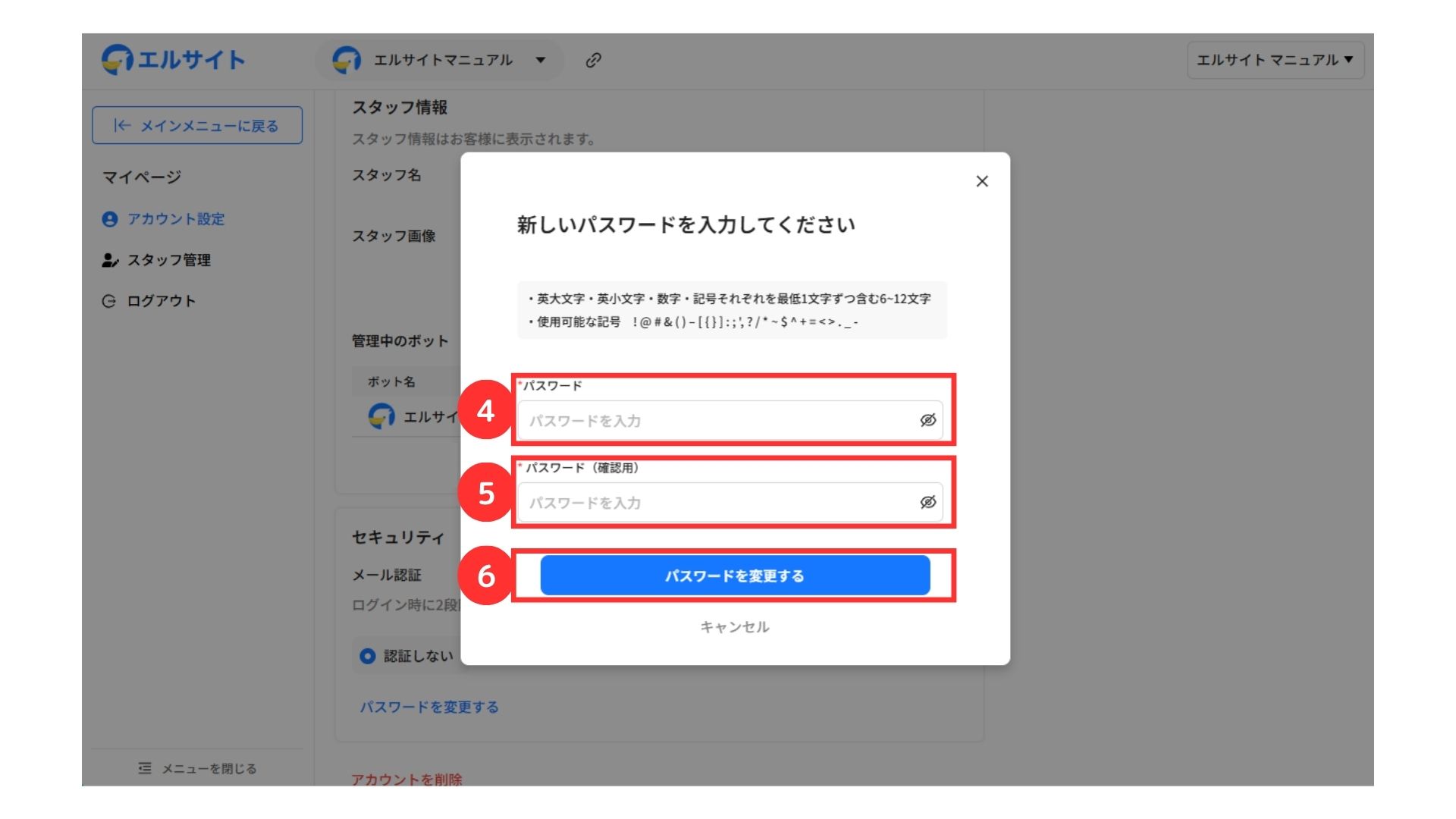 ④新しいパスワードを入力