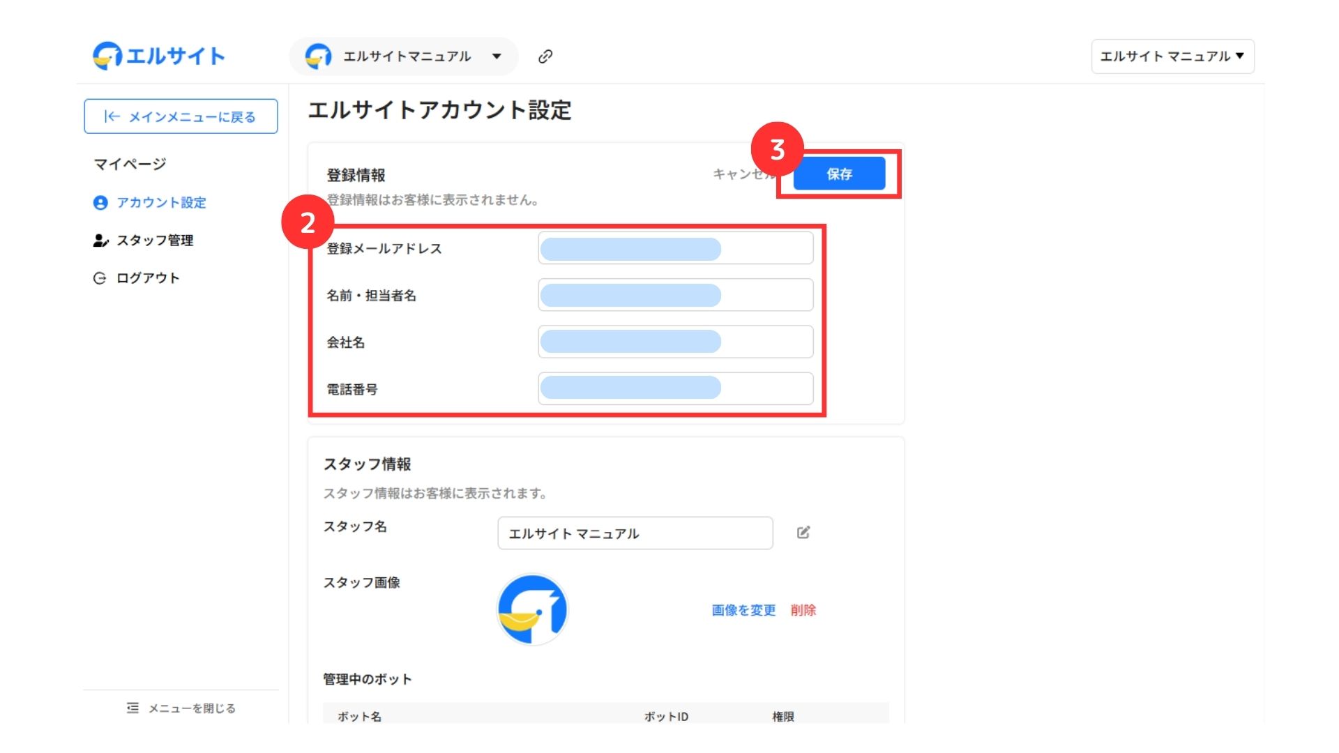 スタッフ情報の変更