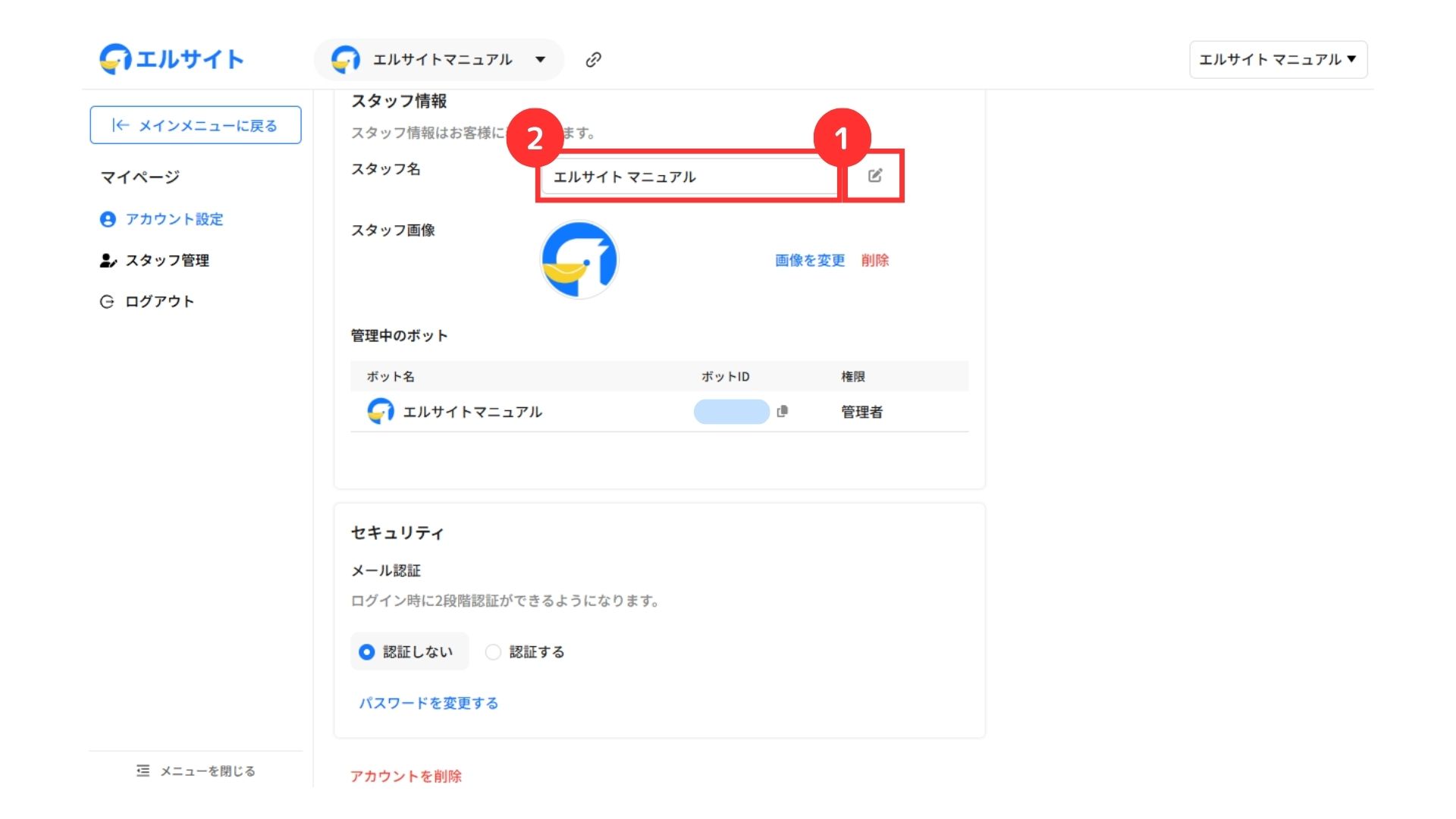 スタッフ名の変更