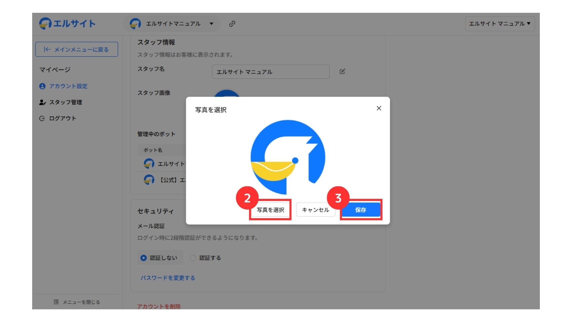 お客様から見えるスタッフ情報の変更が可能です。