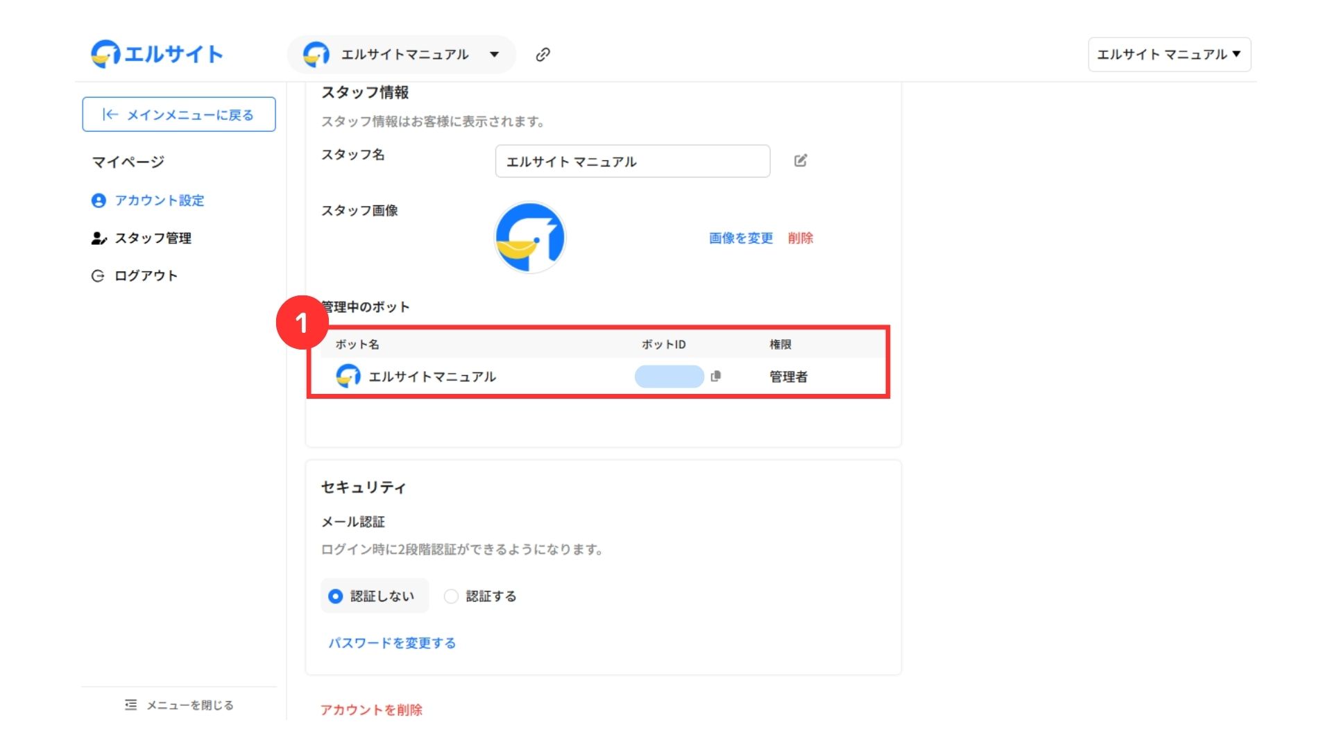 ①管理中のボットの詳細確認が可能