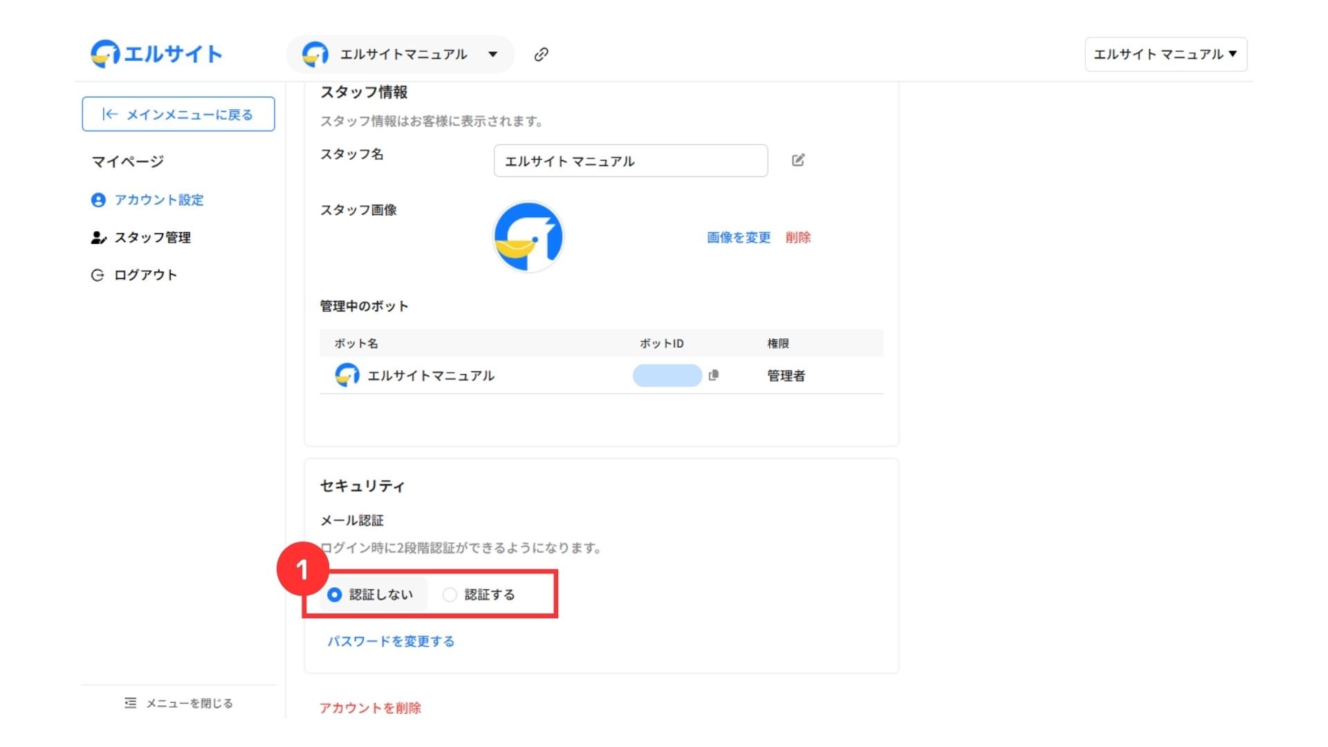 アカウントのセキュリティ設定が可能です。