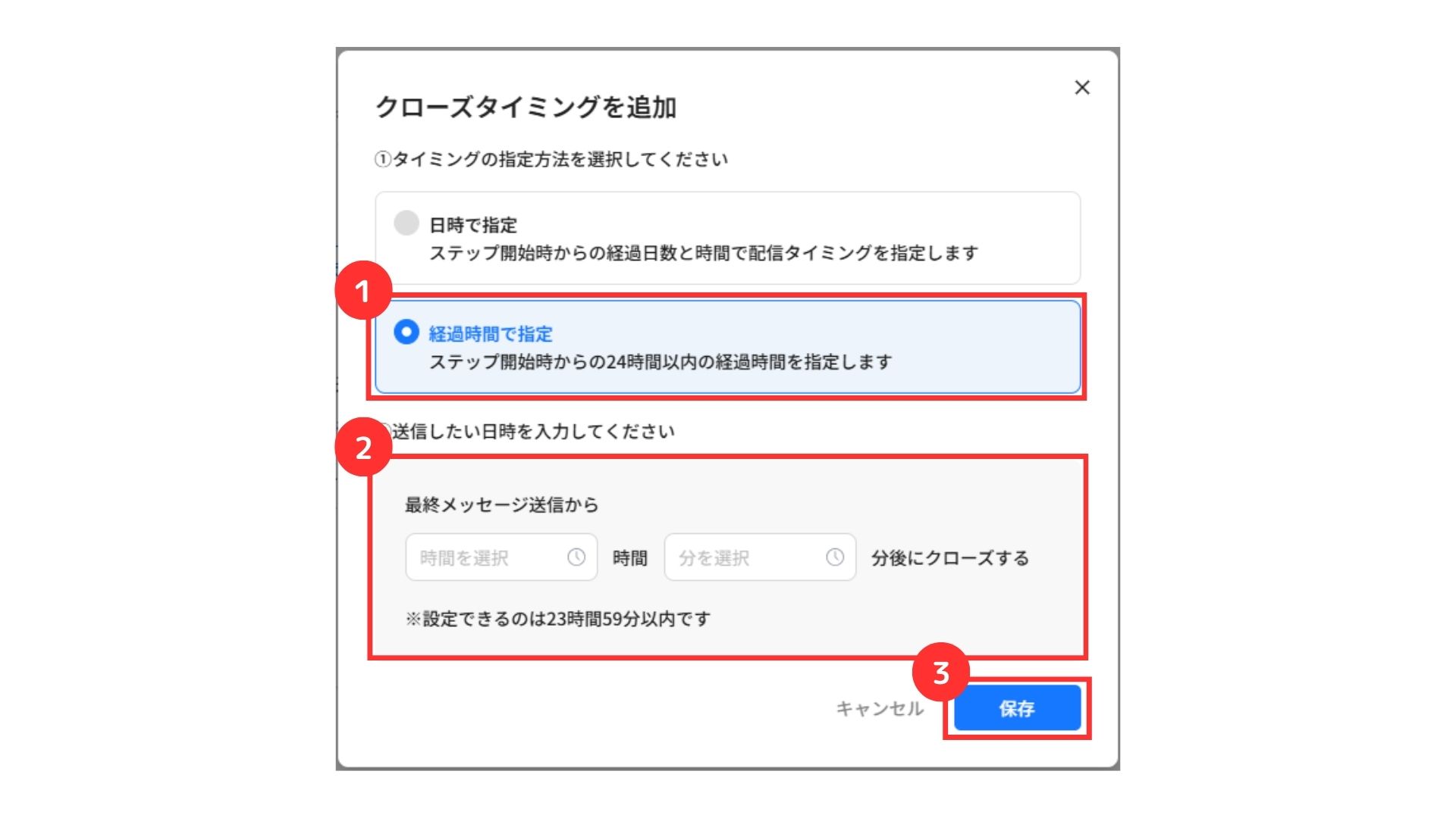 最後にメッセージを送ってから設定された時間経過後にメッセージを送信できます。
