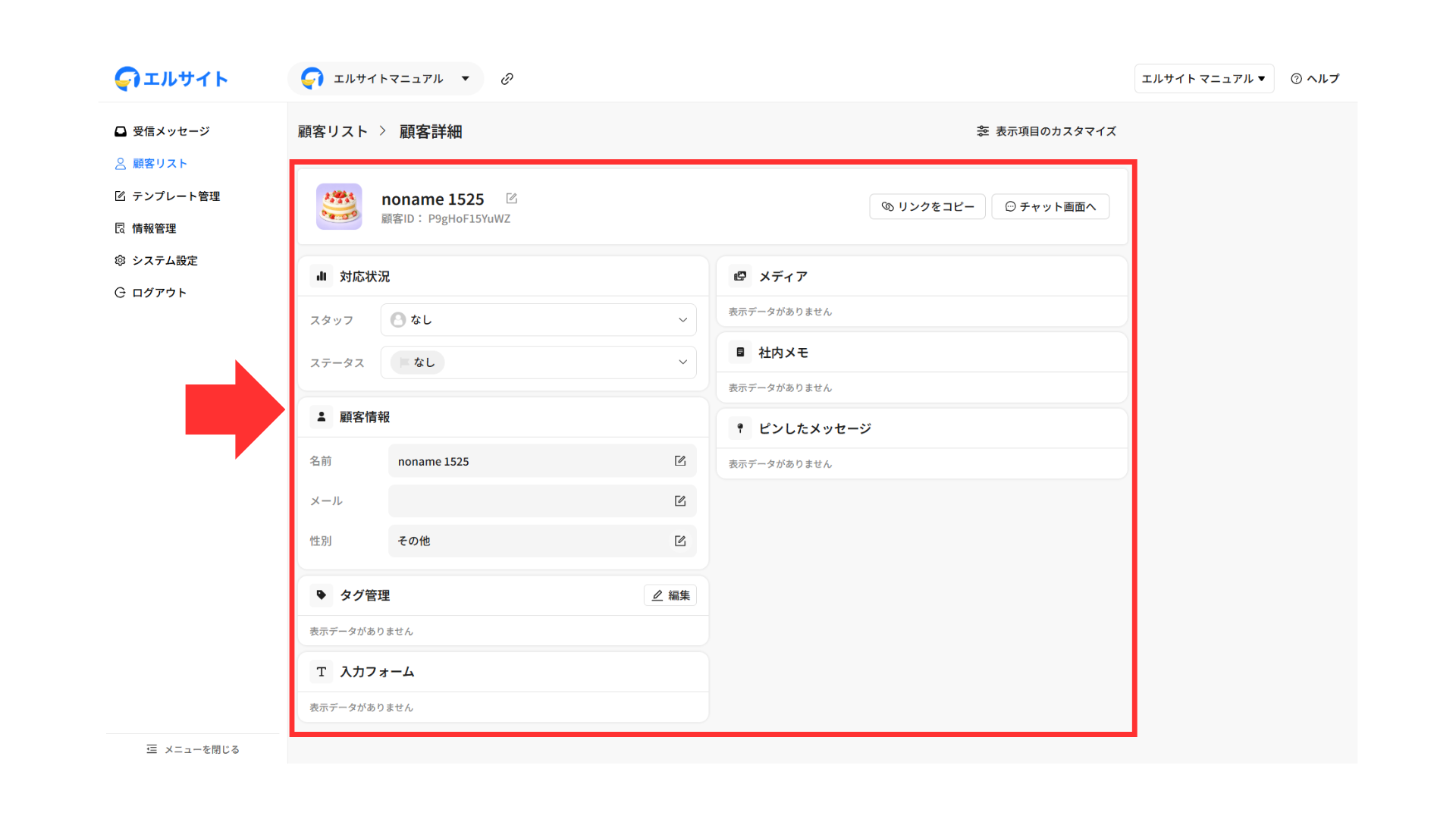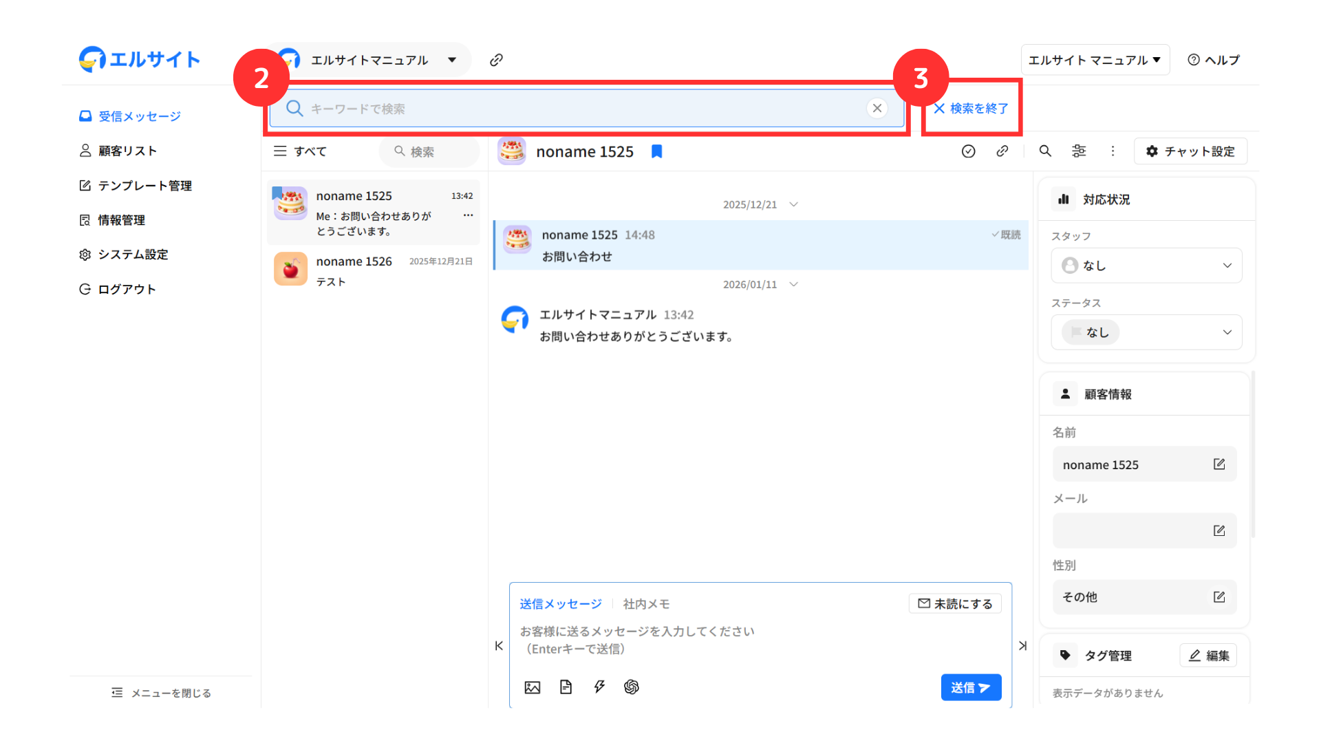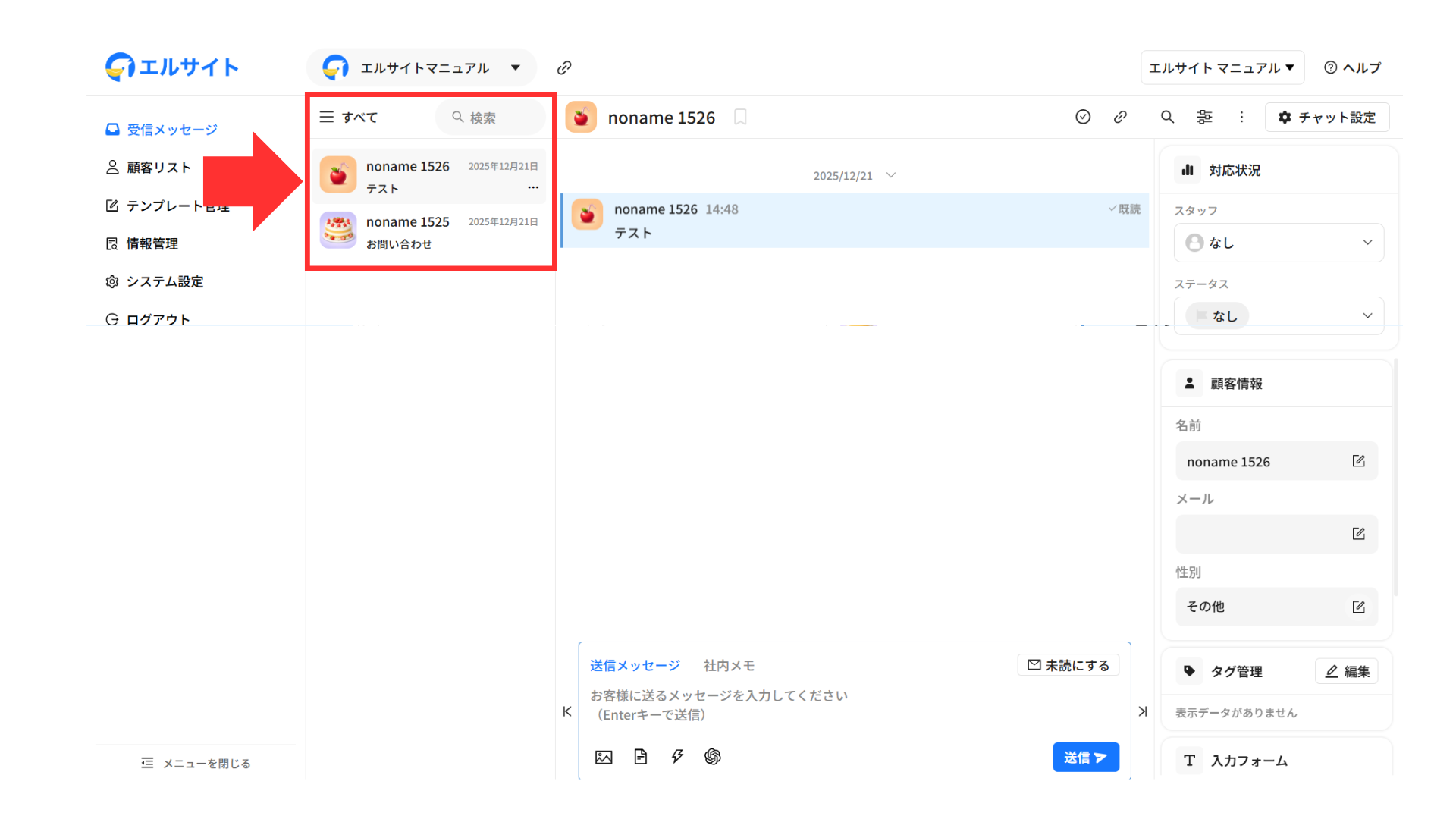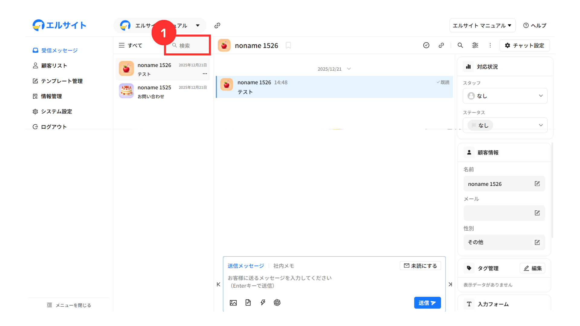 メッセージを送信している顧客の情報などをすぐに確認・編集することができます。