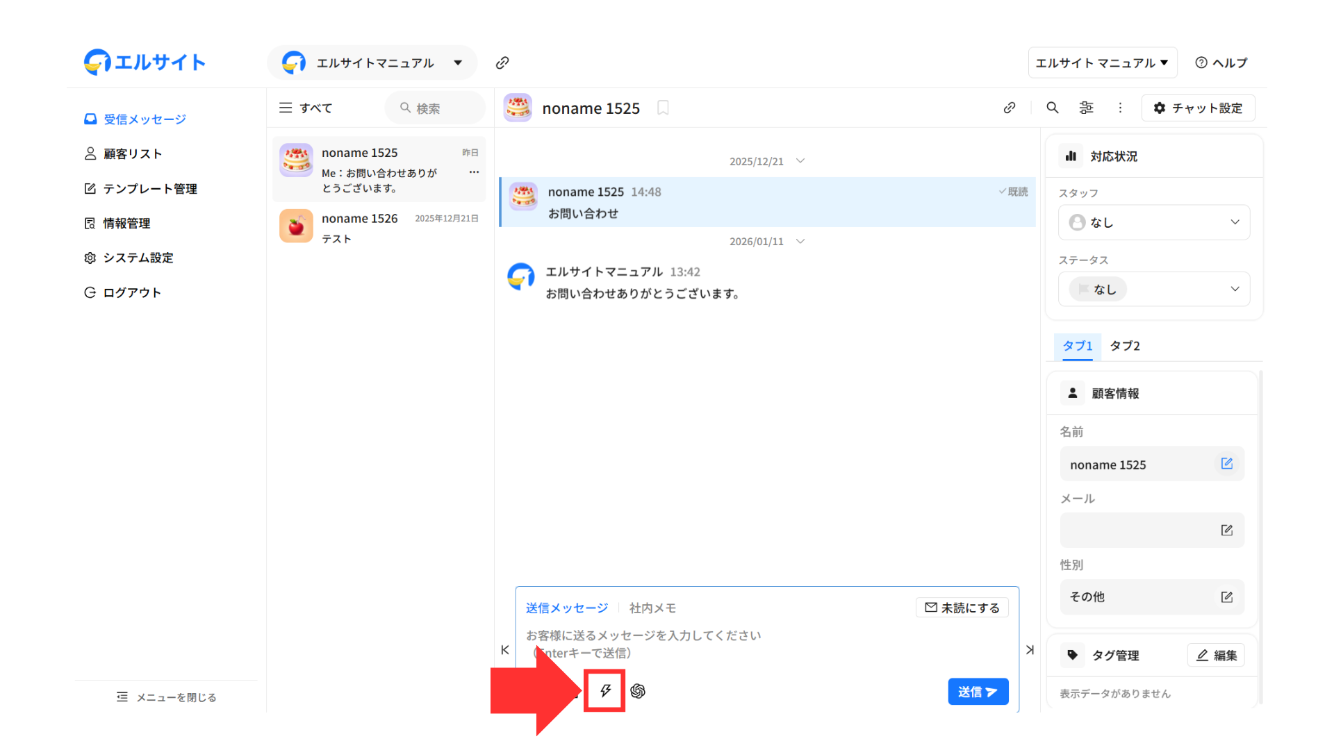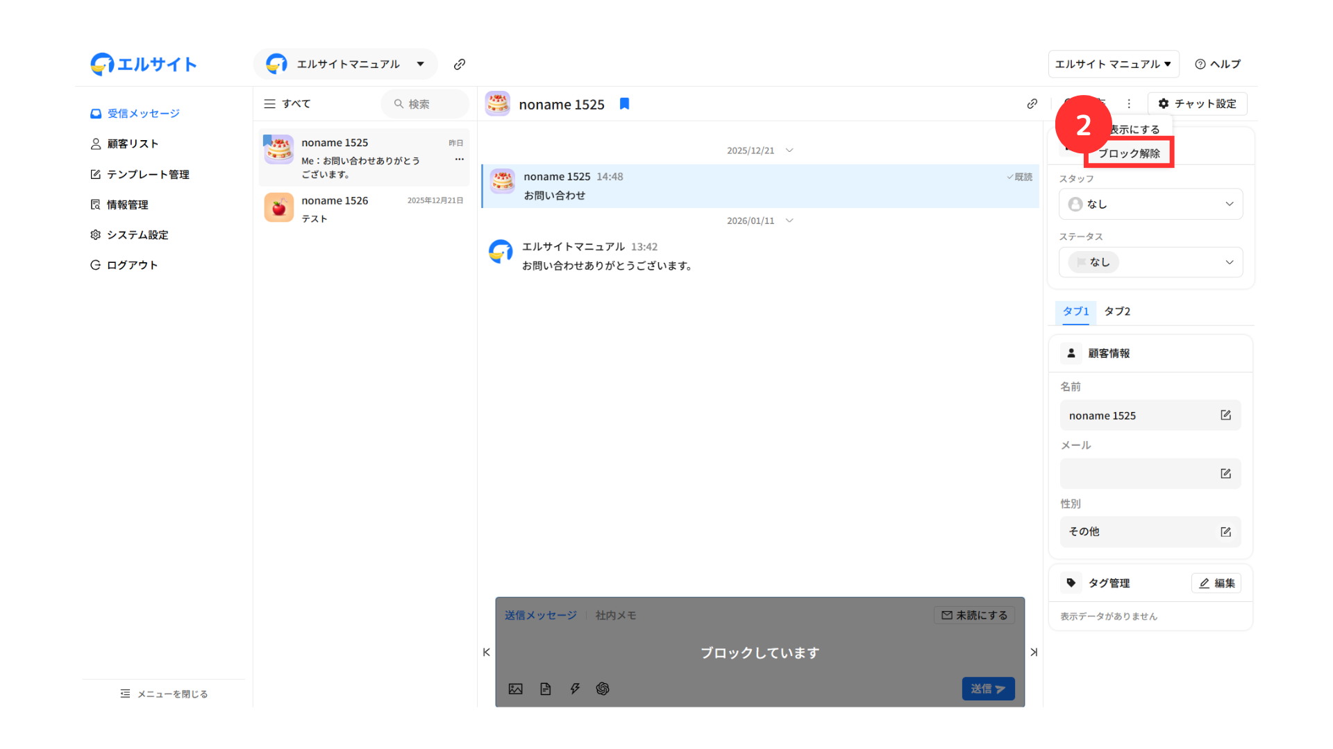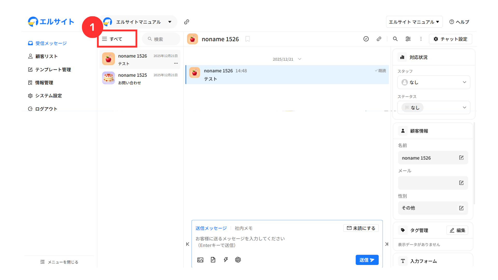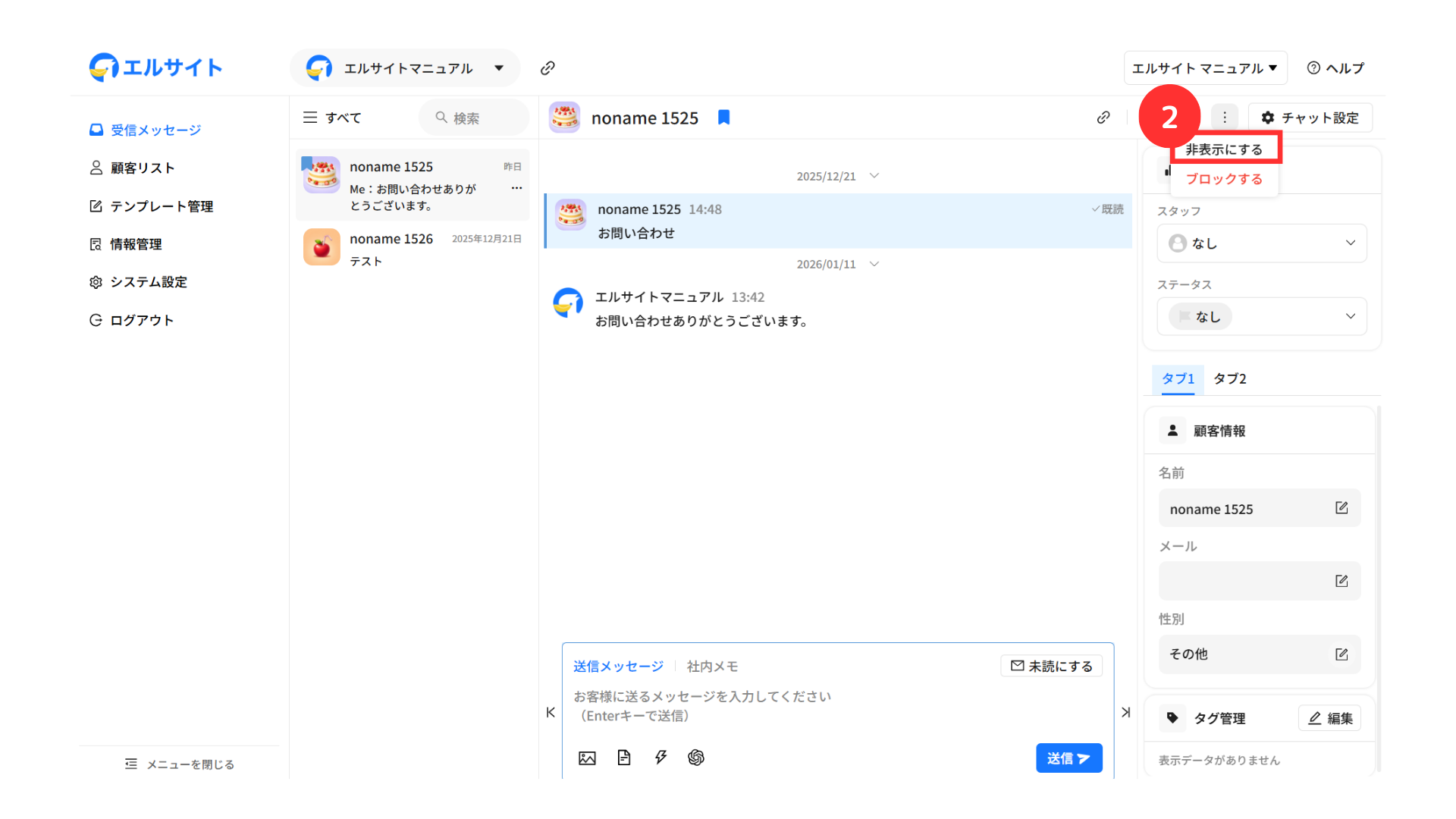 メッセージを送信している顧客の情報などをすぐに確認・編集することができます。