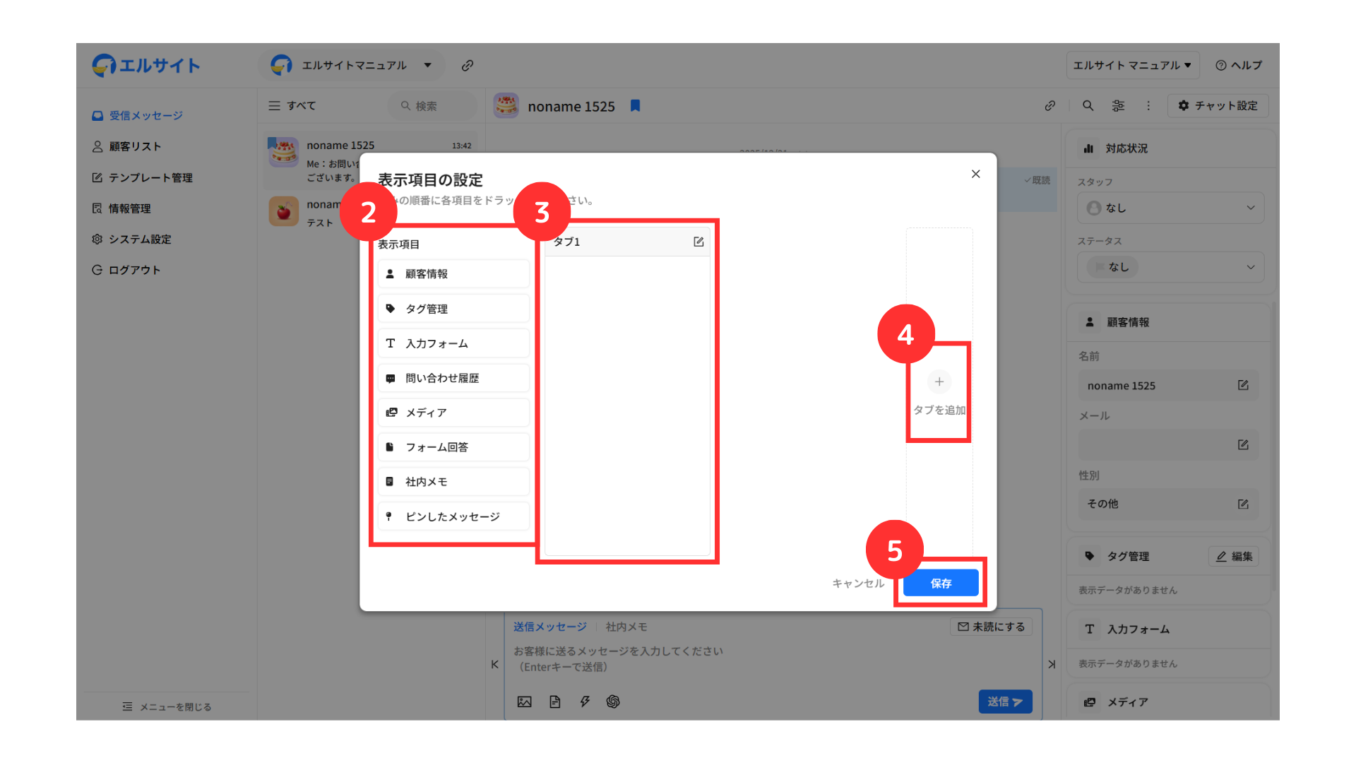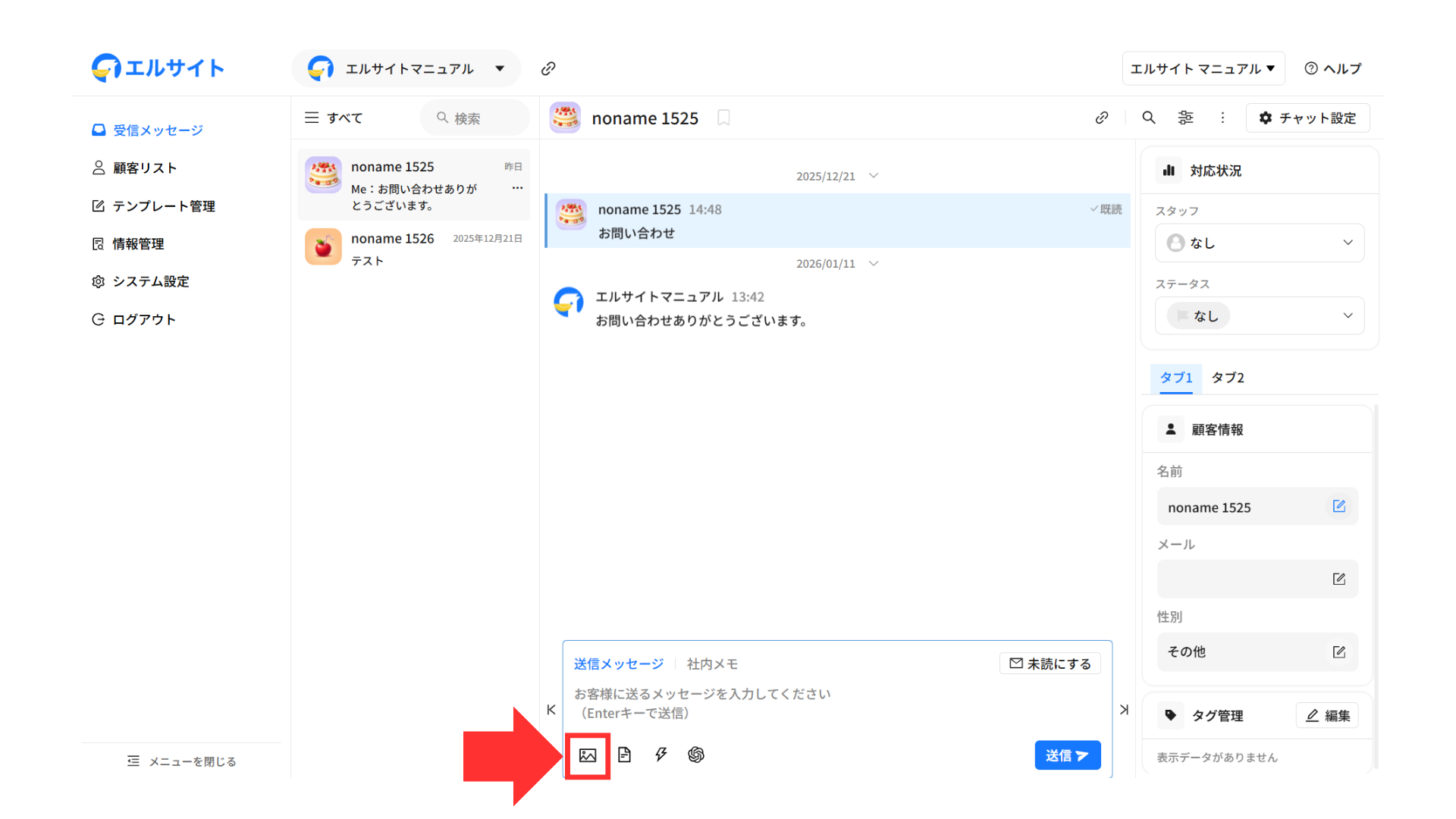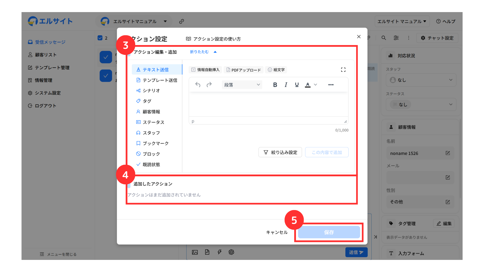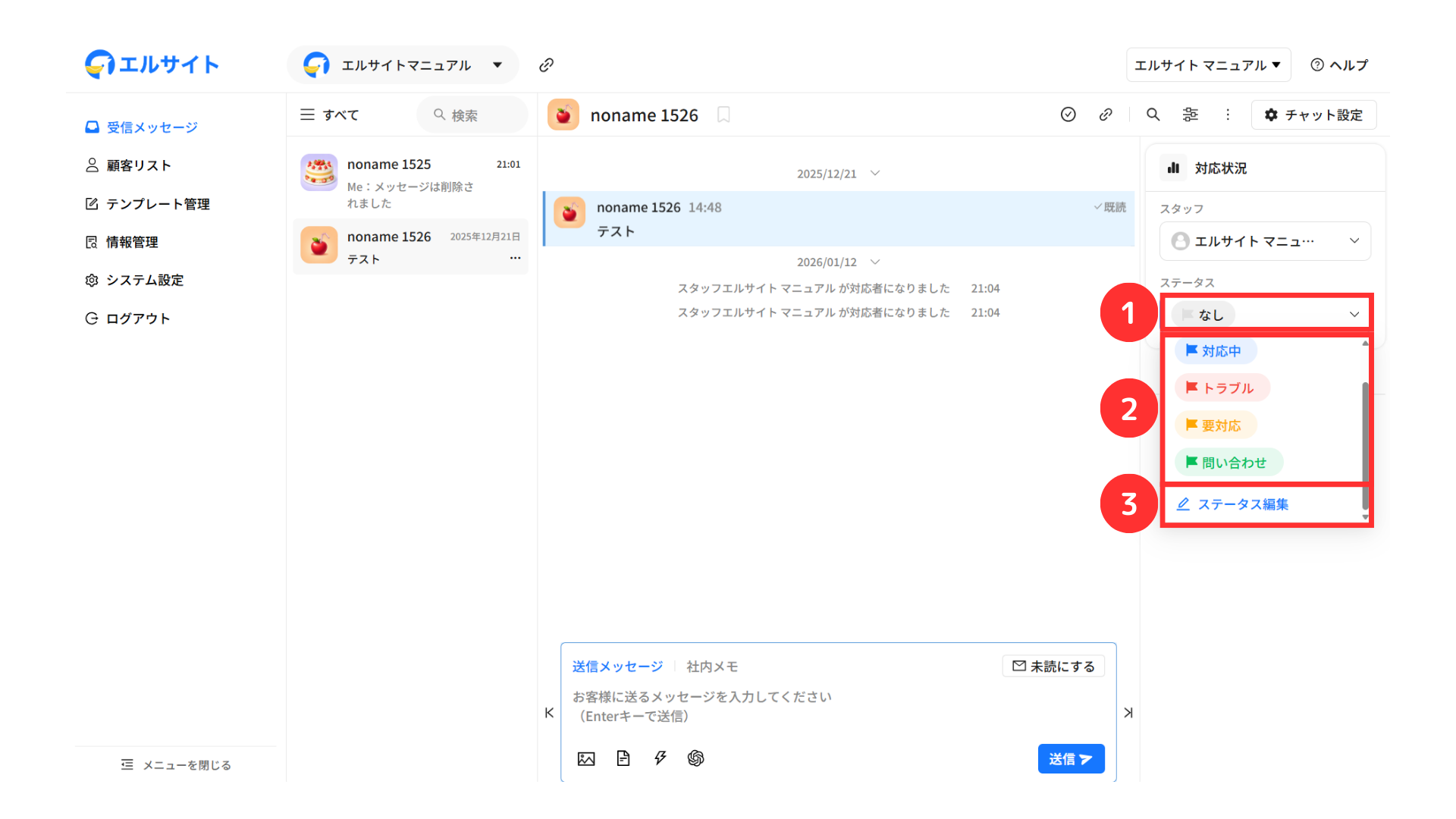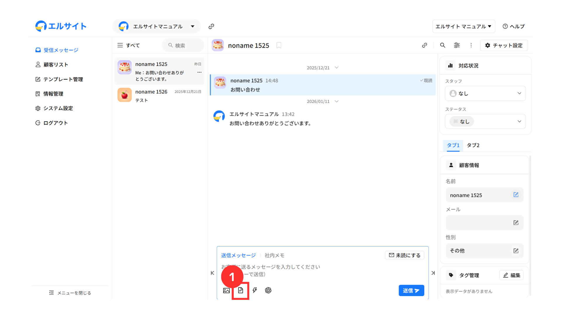 メッセージを送信している顧客の情報などをすぐに確認・編集することができます。