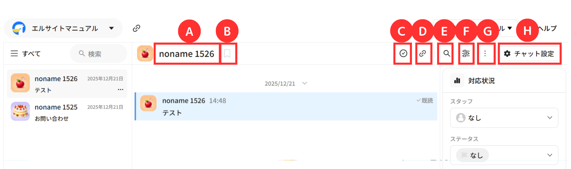 選択した顧客とのチャット履歴を確認・操作することができます。