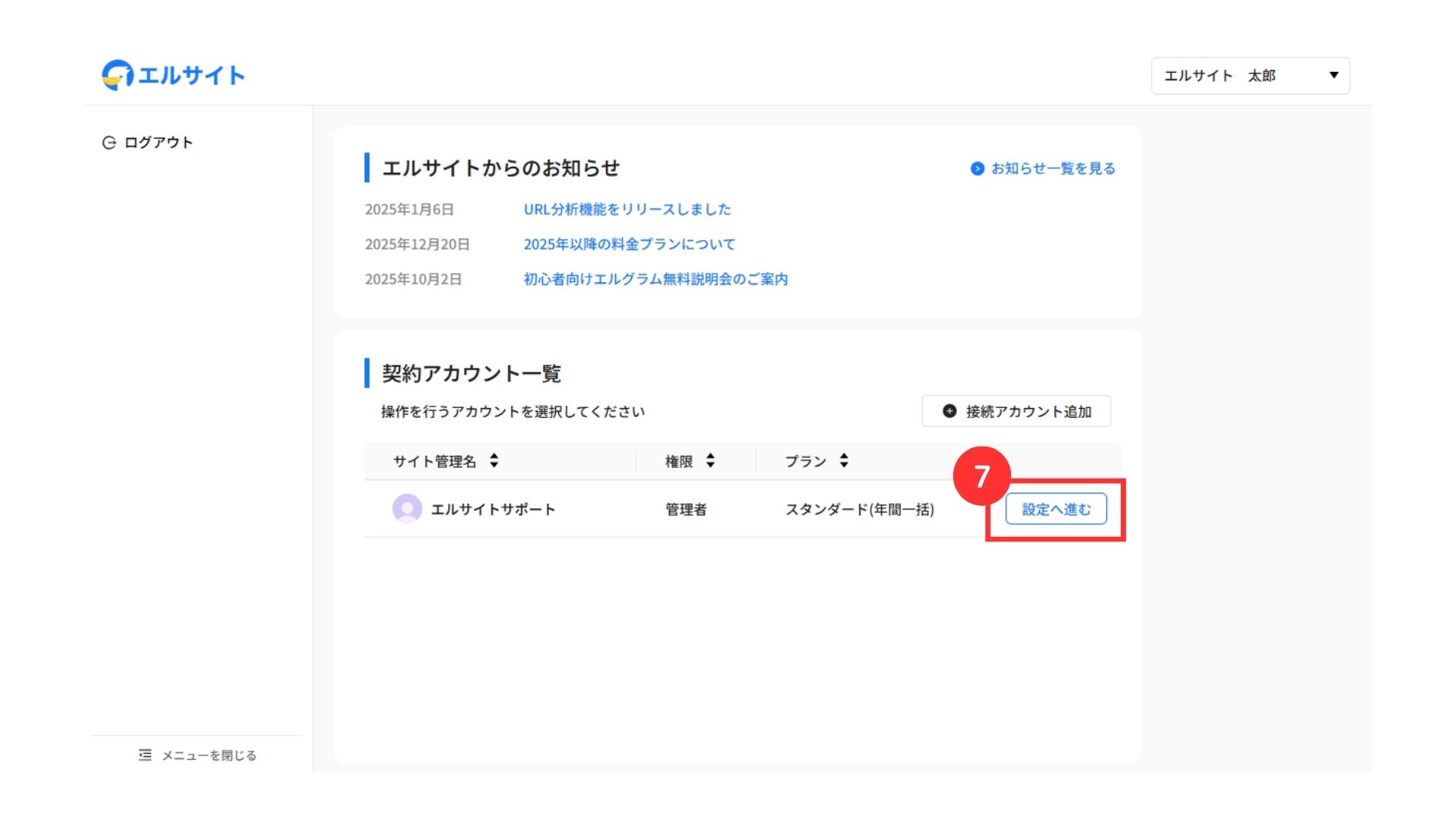 続いてエルサイトにログインし、サイトを利用するための準備を進めましょう。