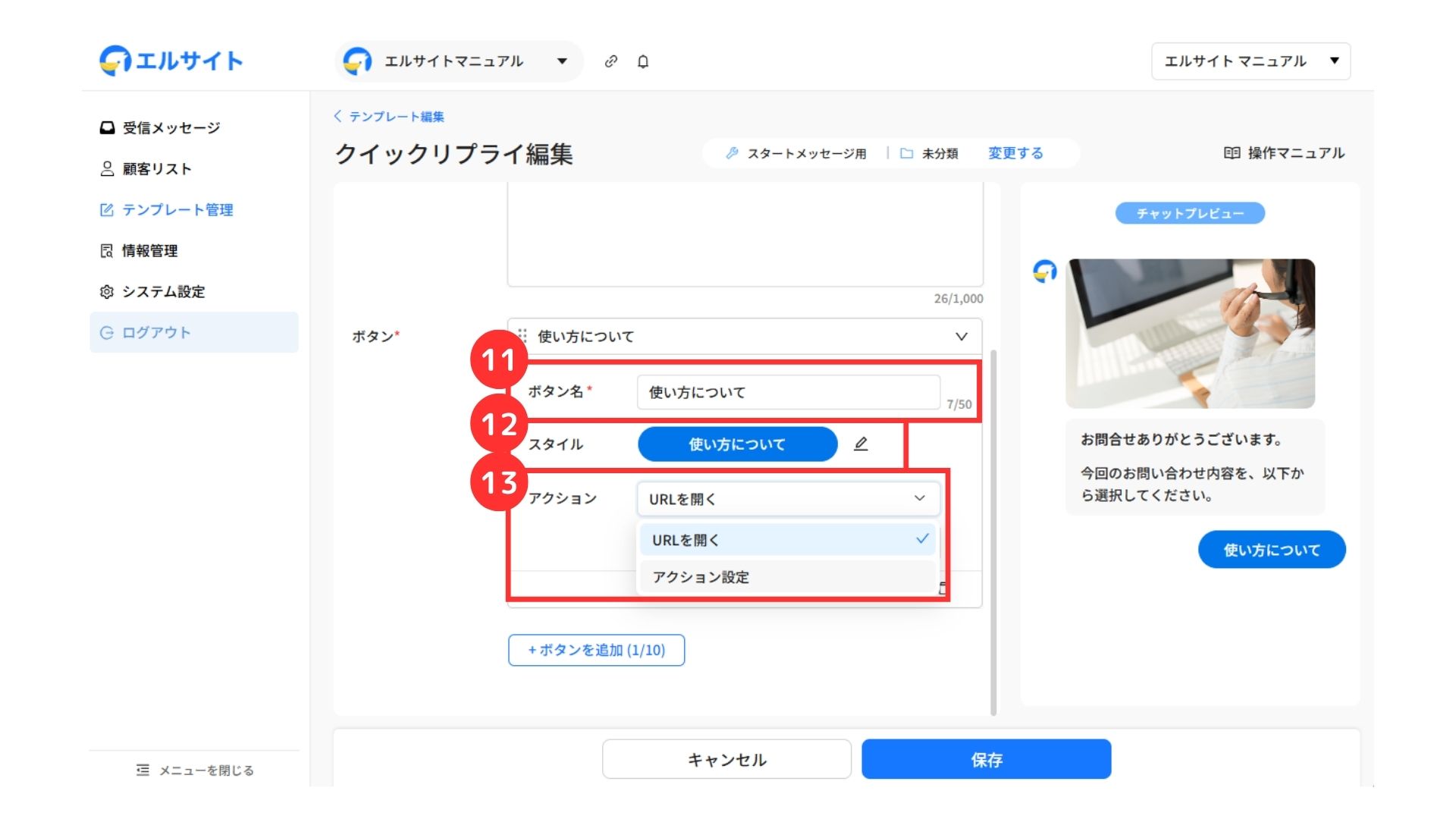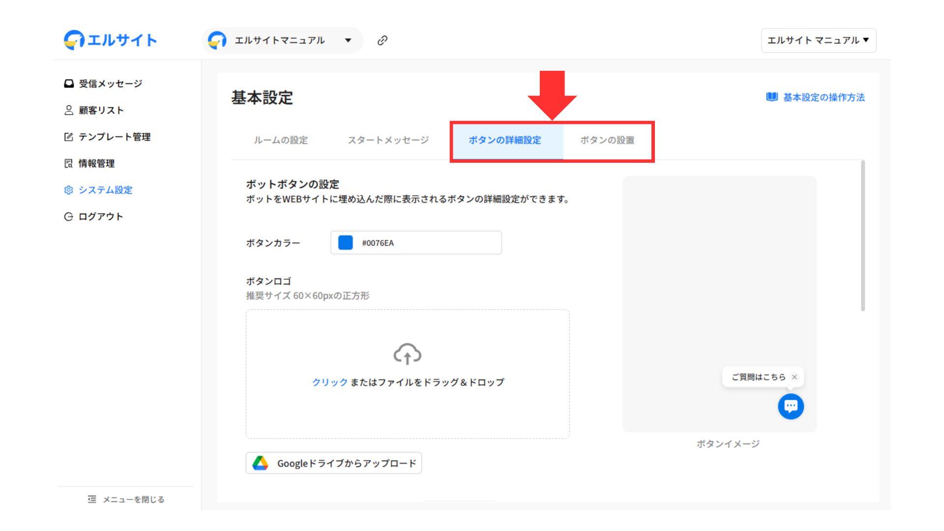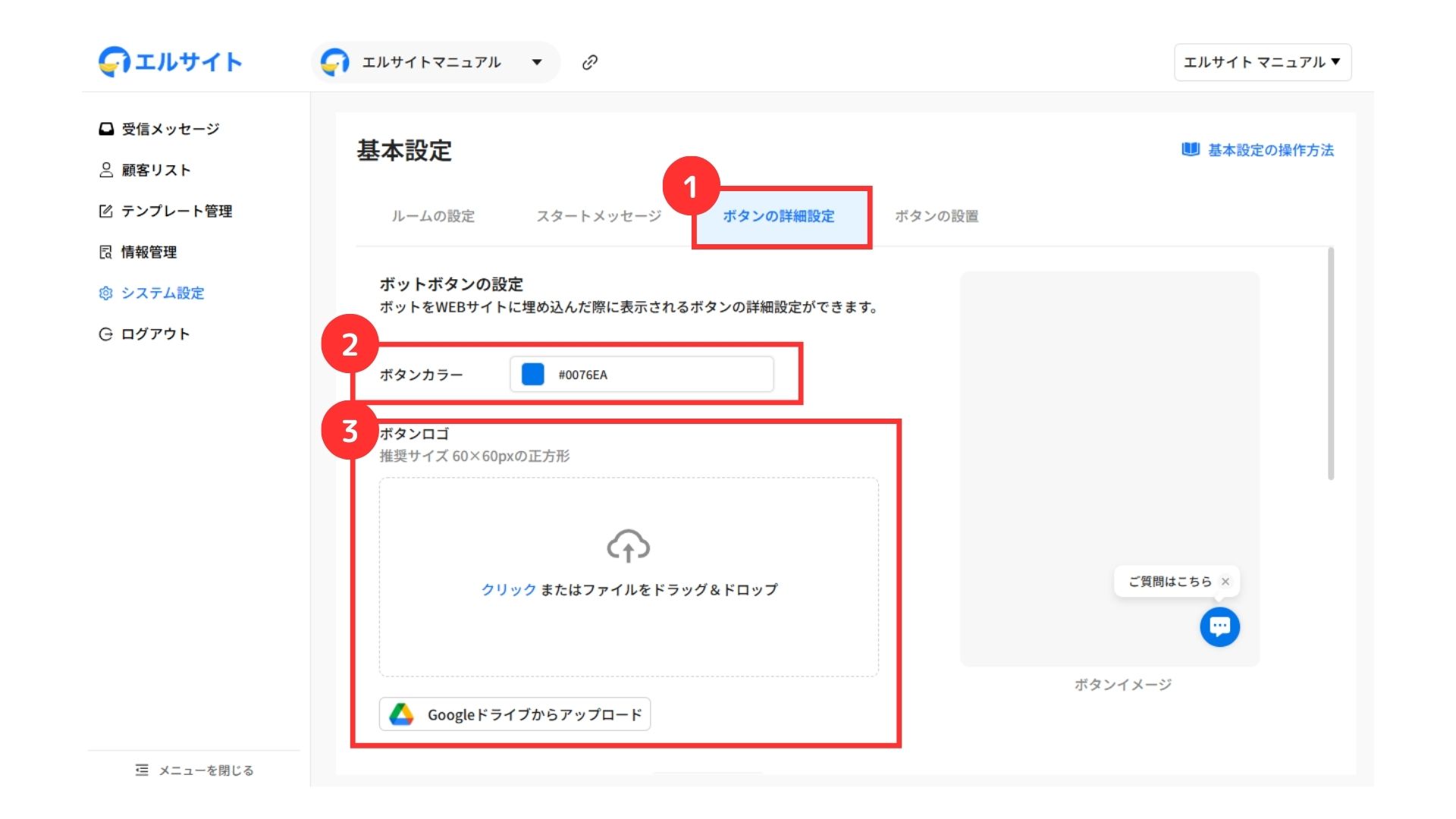 以下の2つの項目について、お問合せボタンの設定を行います。