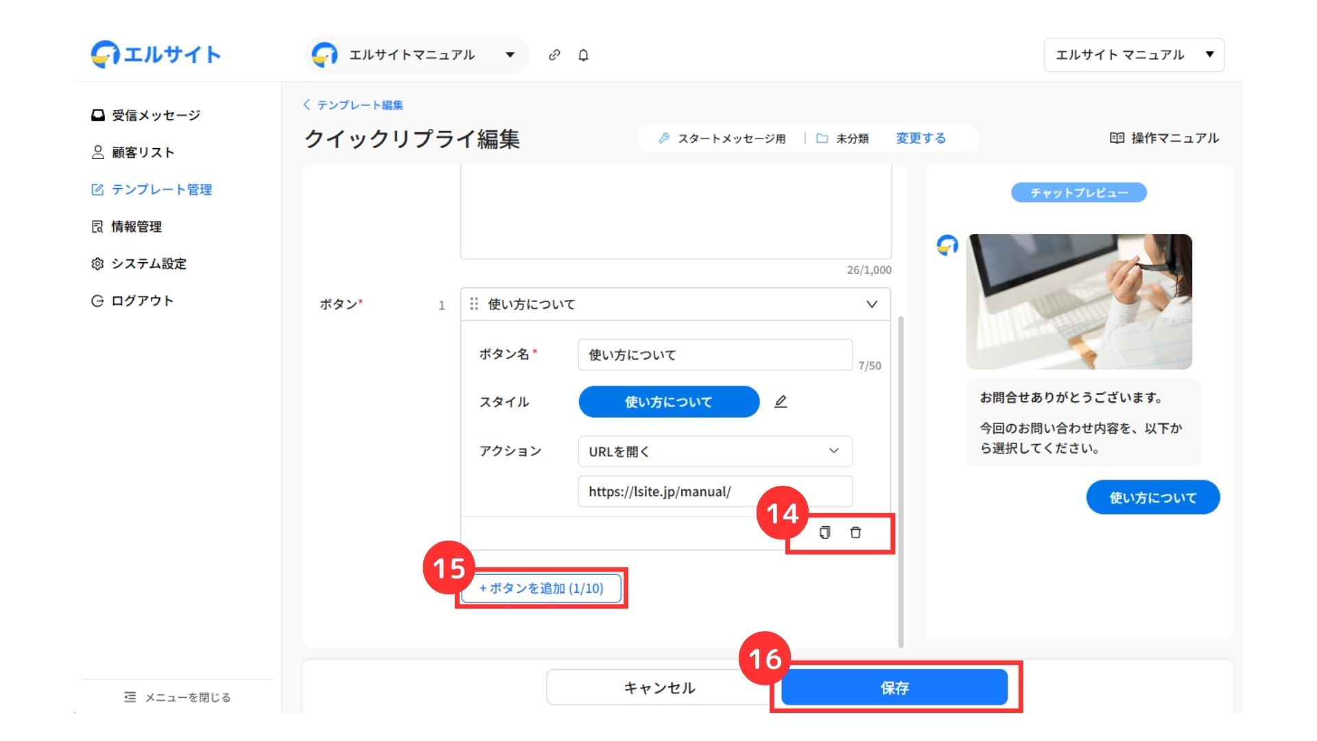 ⑰作成したメッセージの並び替えが可能