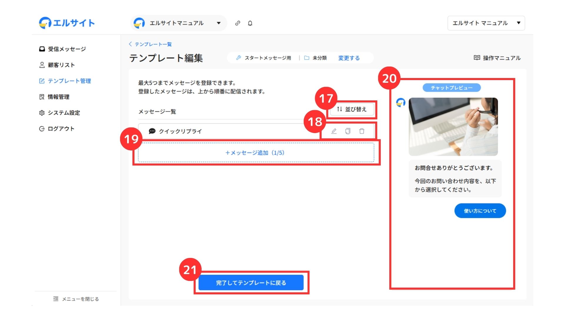 ㉑「完了してテンプレートに戻る」をクリック