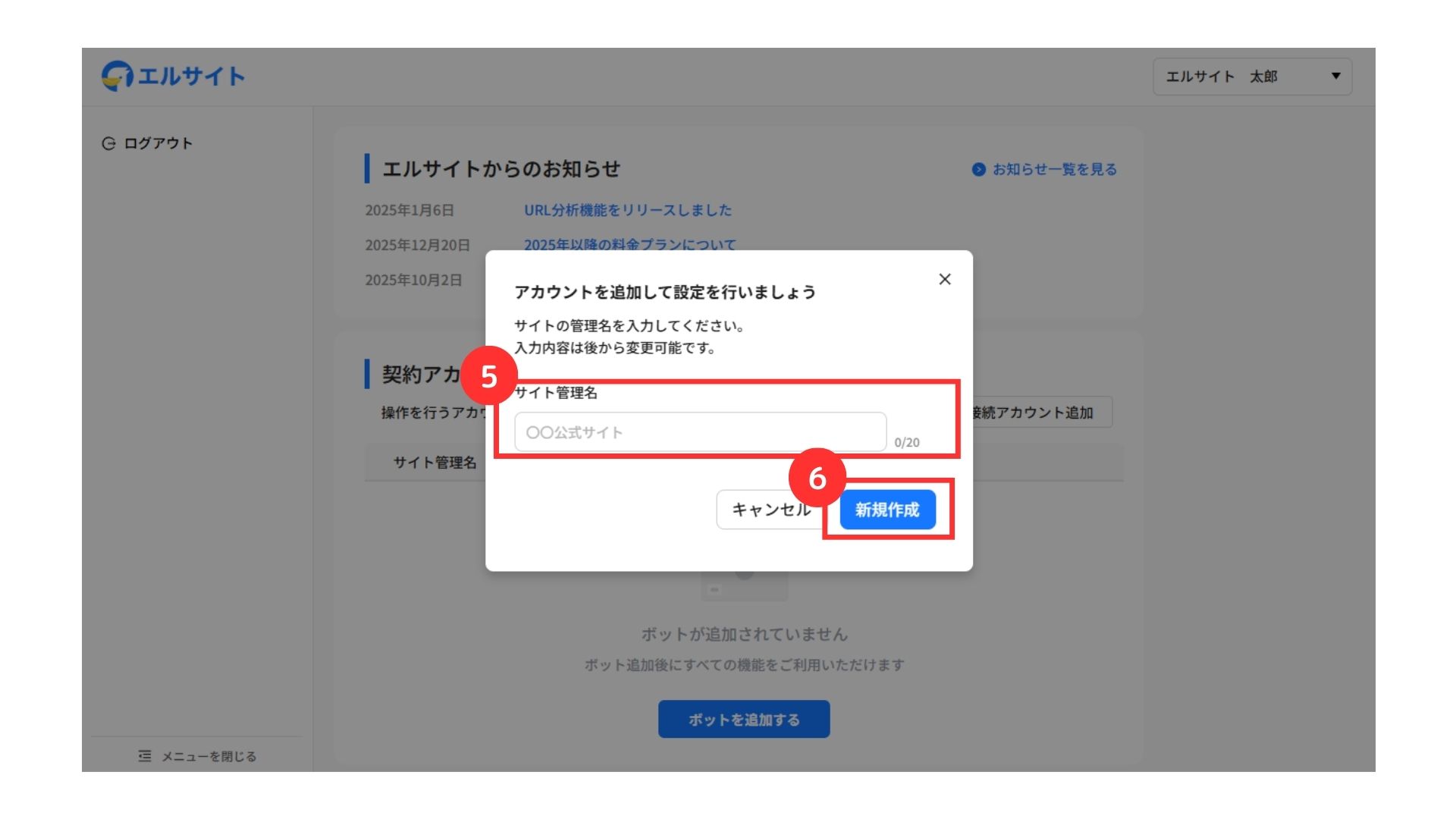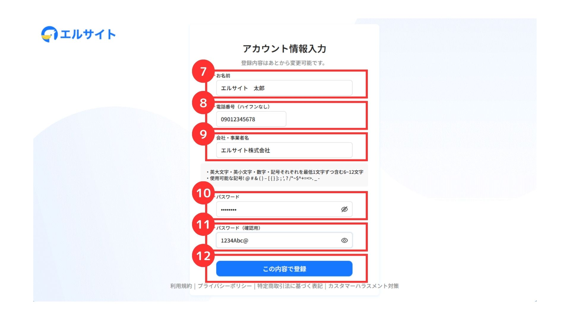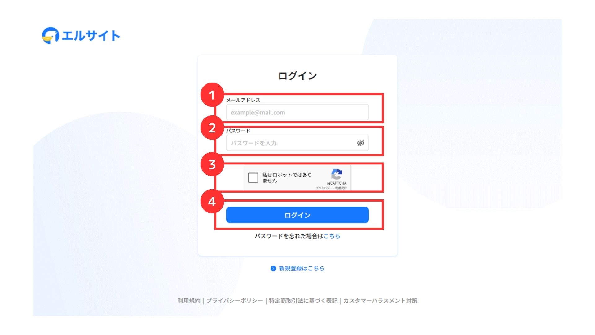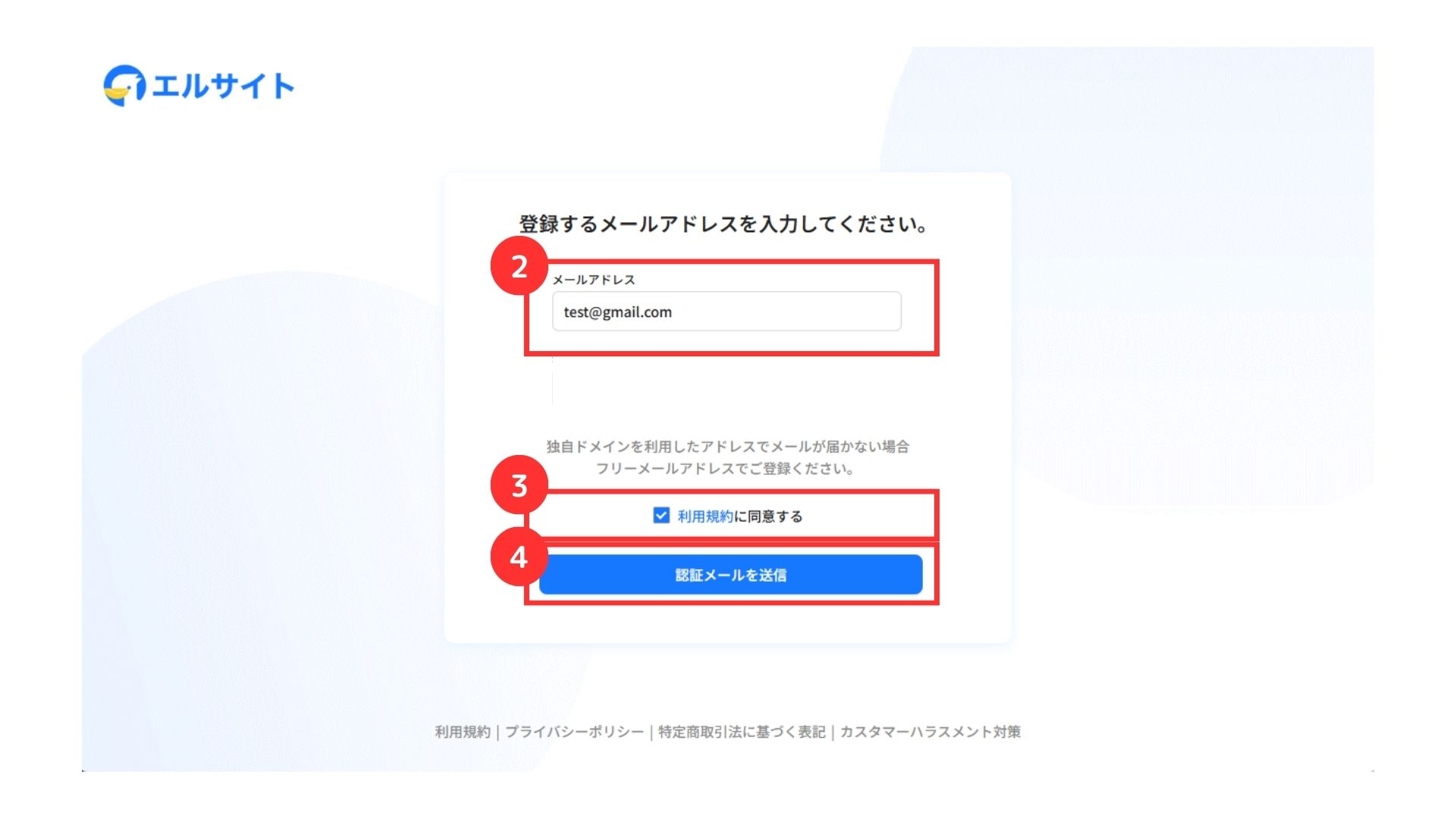 まずは、エルサイトへ新規登録を行います。