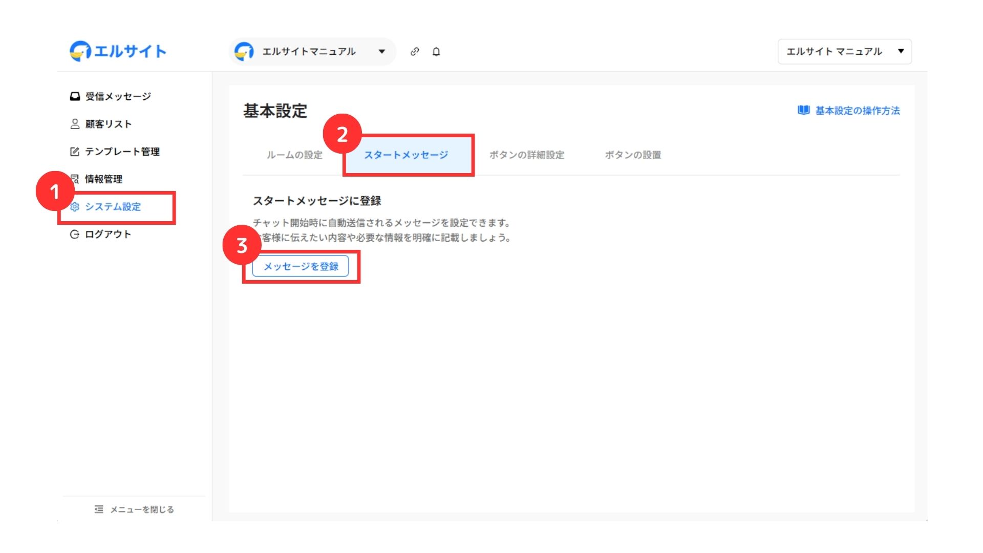 ③「メッセージ登録」をクリック