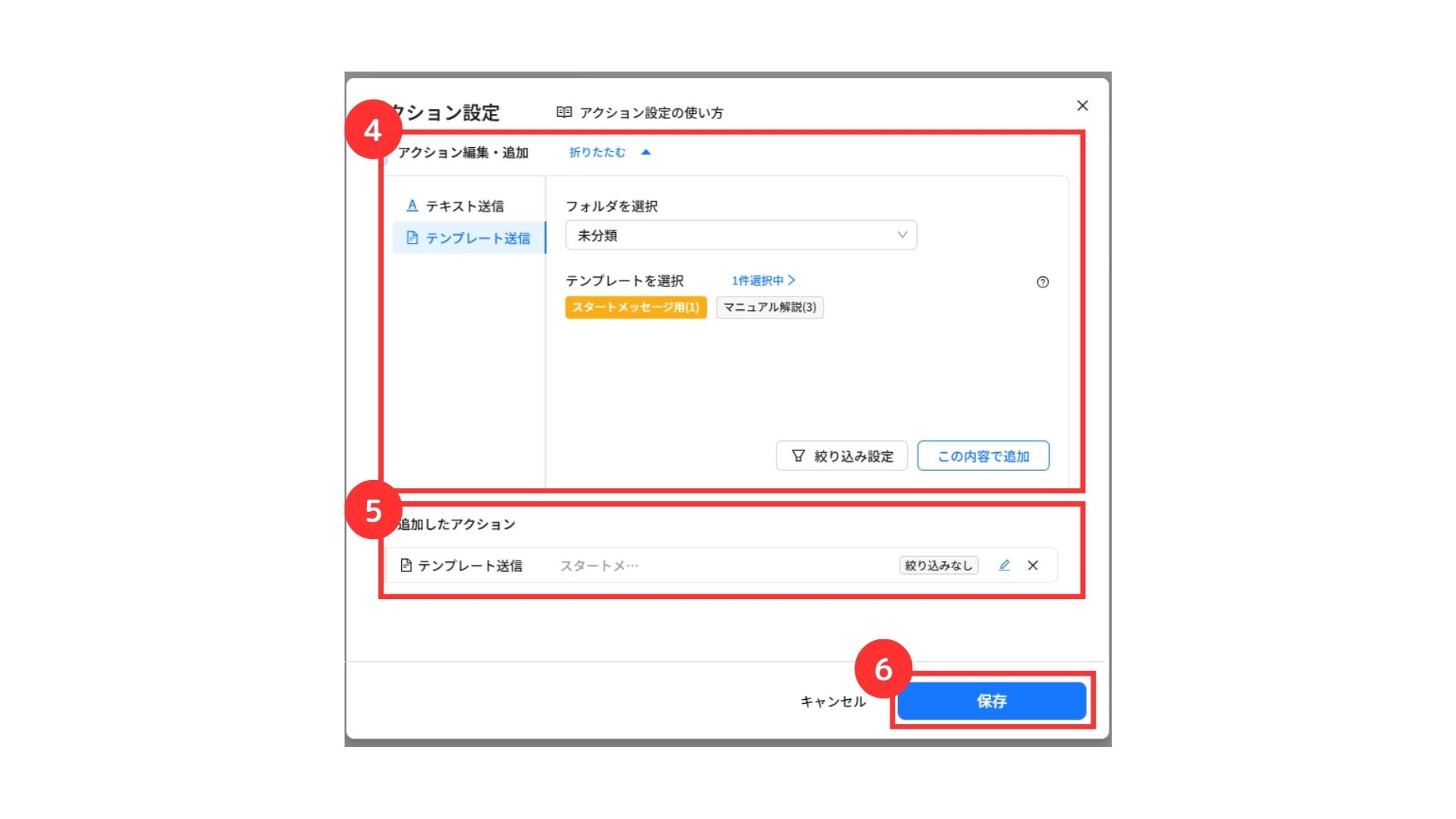 ④追加したアクション内容を確認