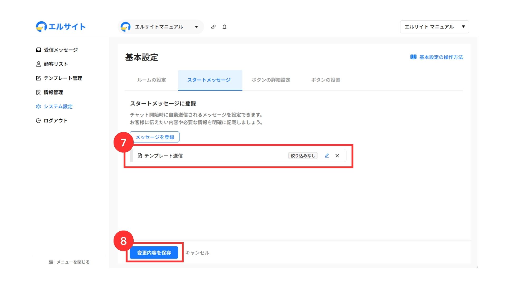 これで、スタートメッセージの設定は完了です。