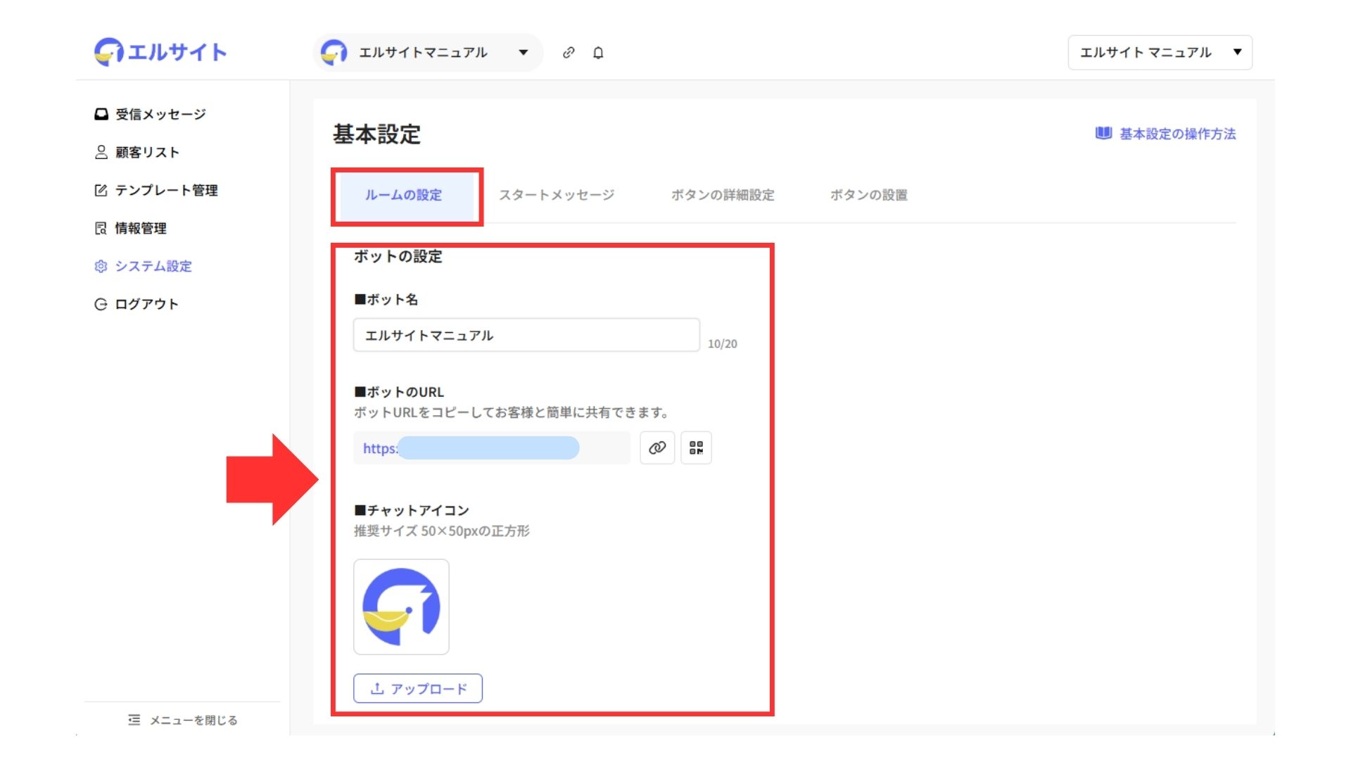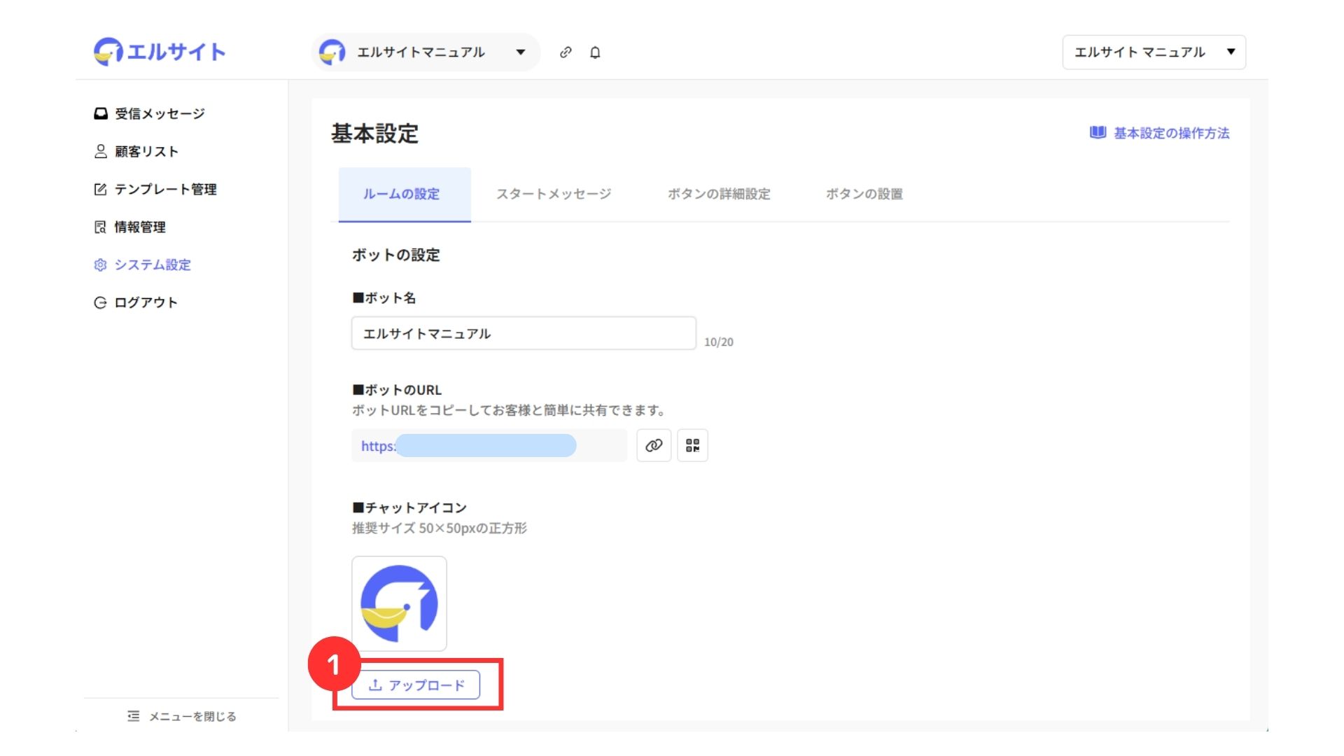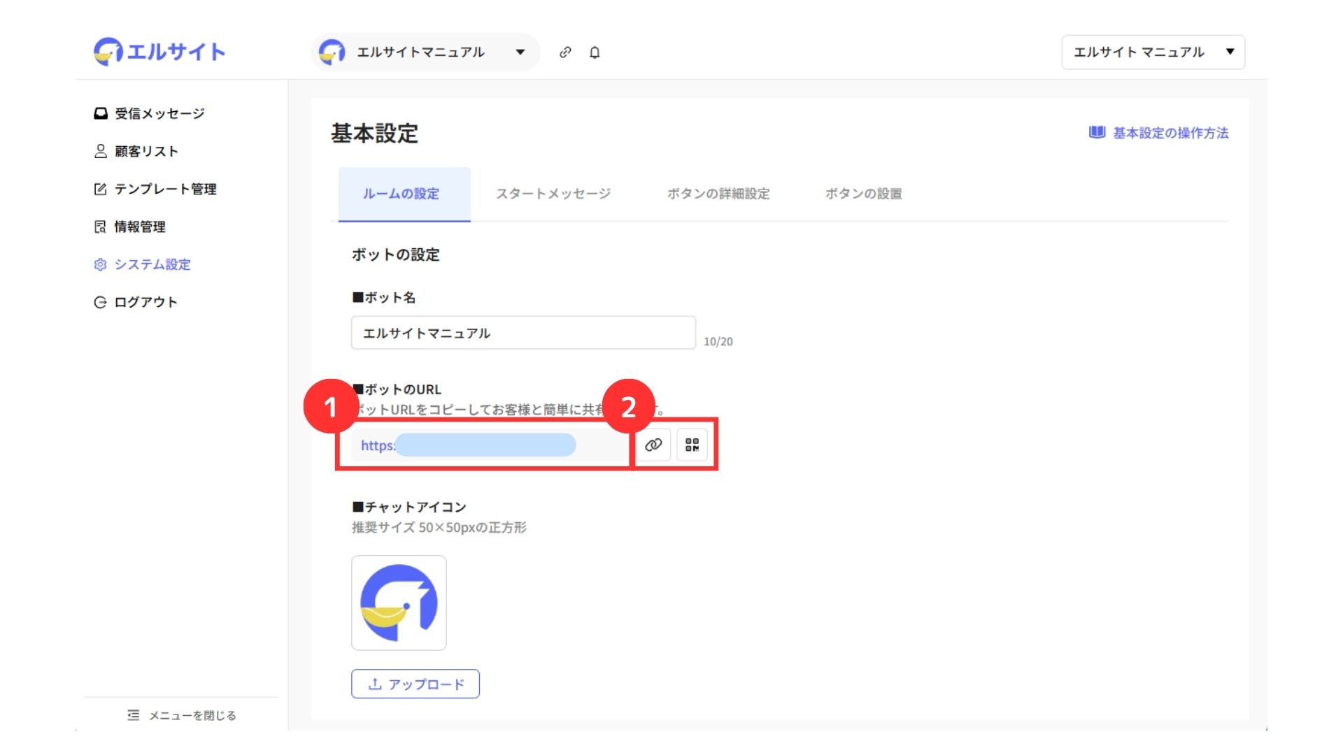 ①ルームのURLを確認可能