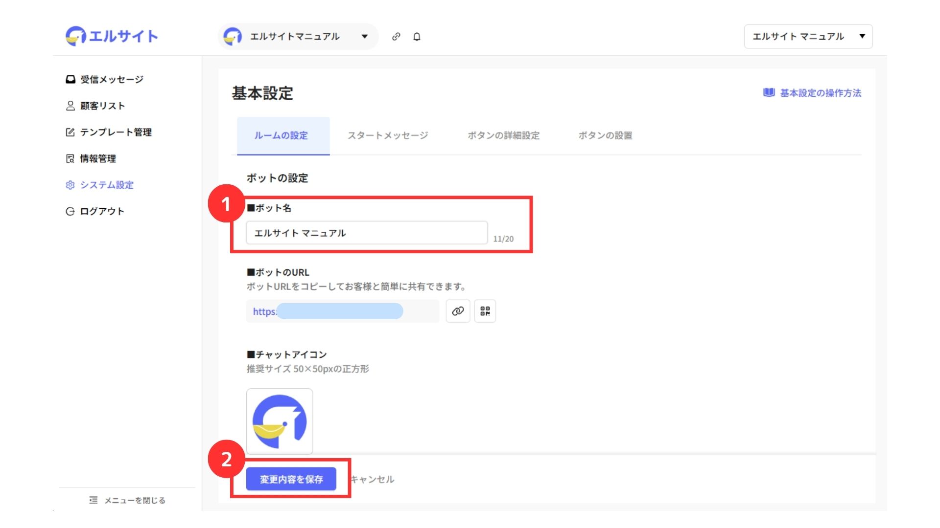 ①ボット名を入力