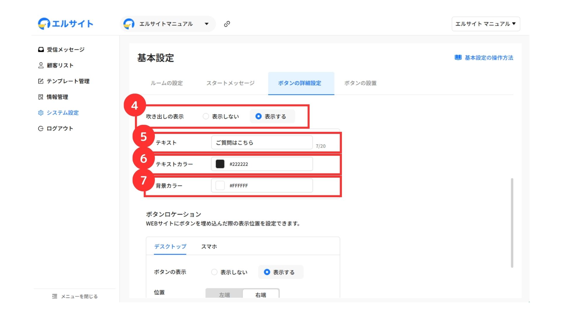 ボタンの詳細設定