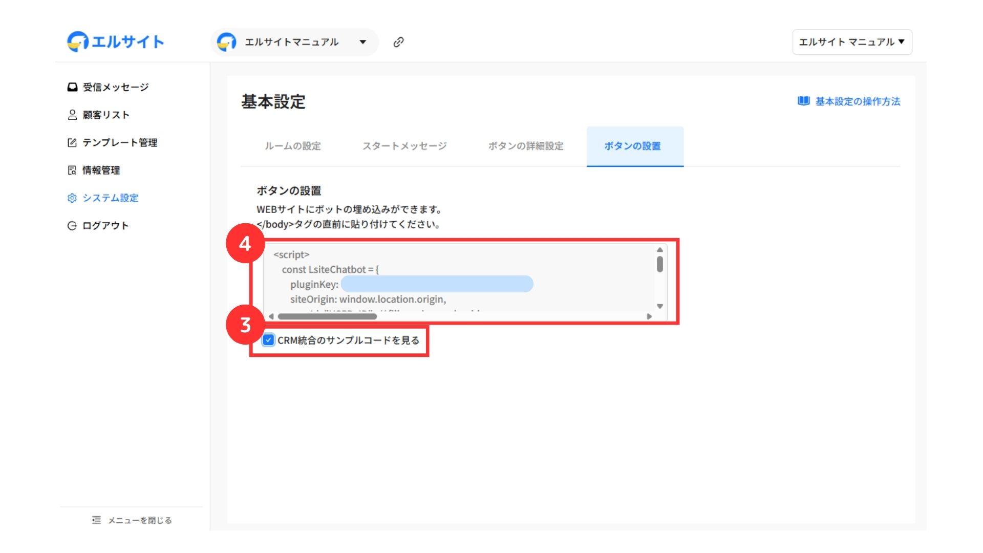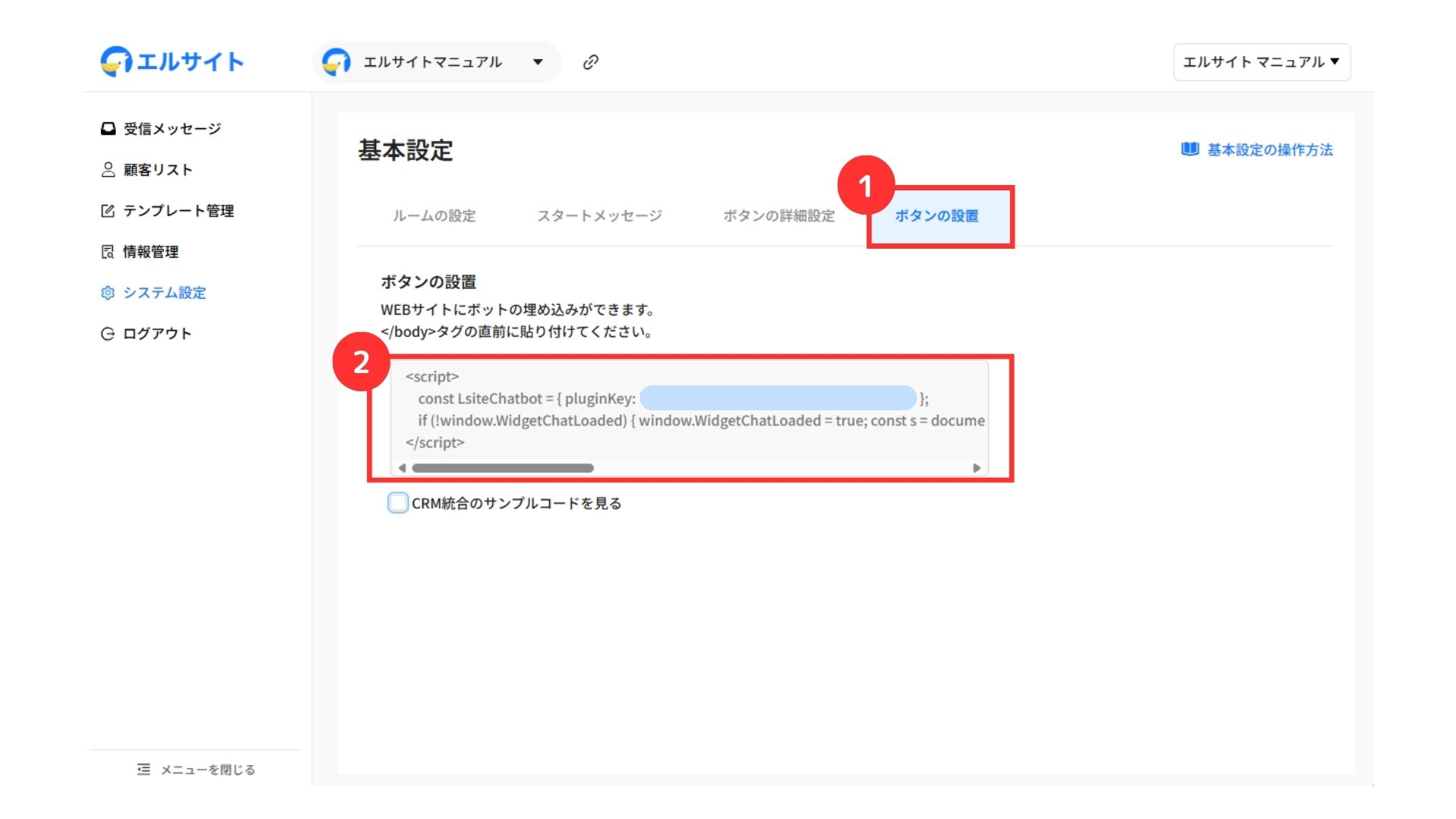 ③「CRM統合のサンプルコードを見る」にチェック