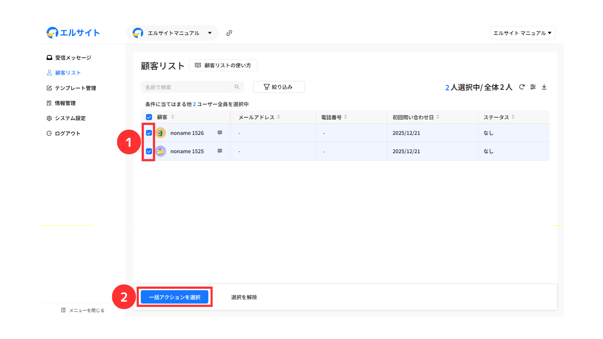 ②対象の顧客をクリック