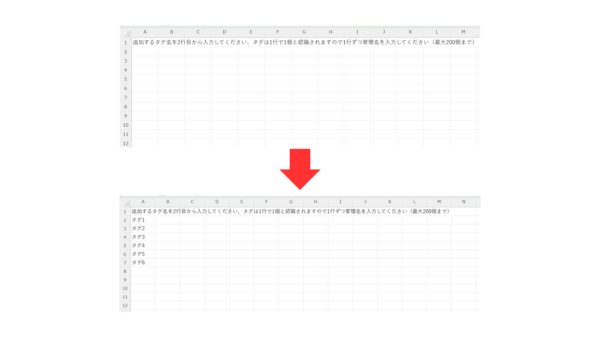 ・一度に追加できるタグ数は最大200個です。