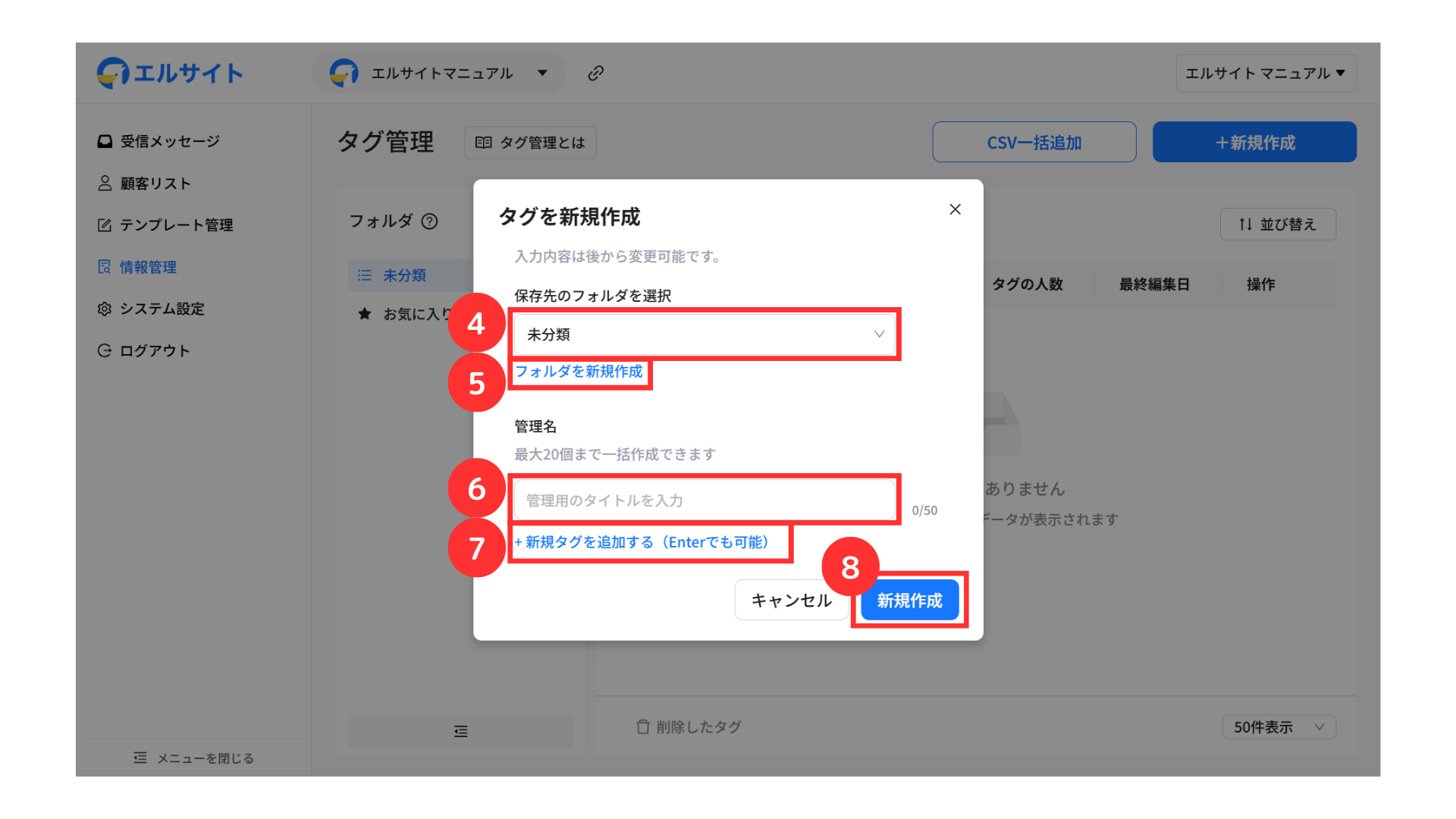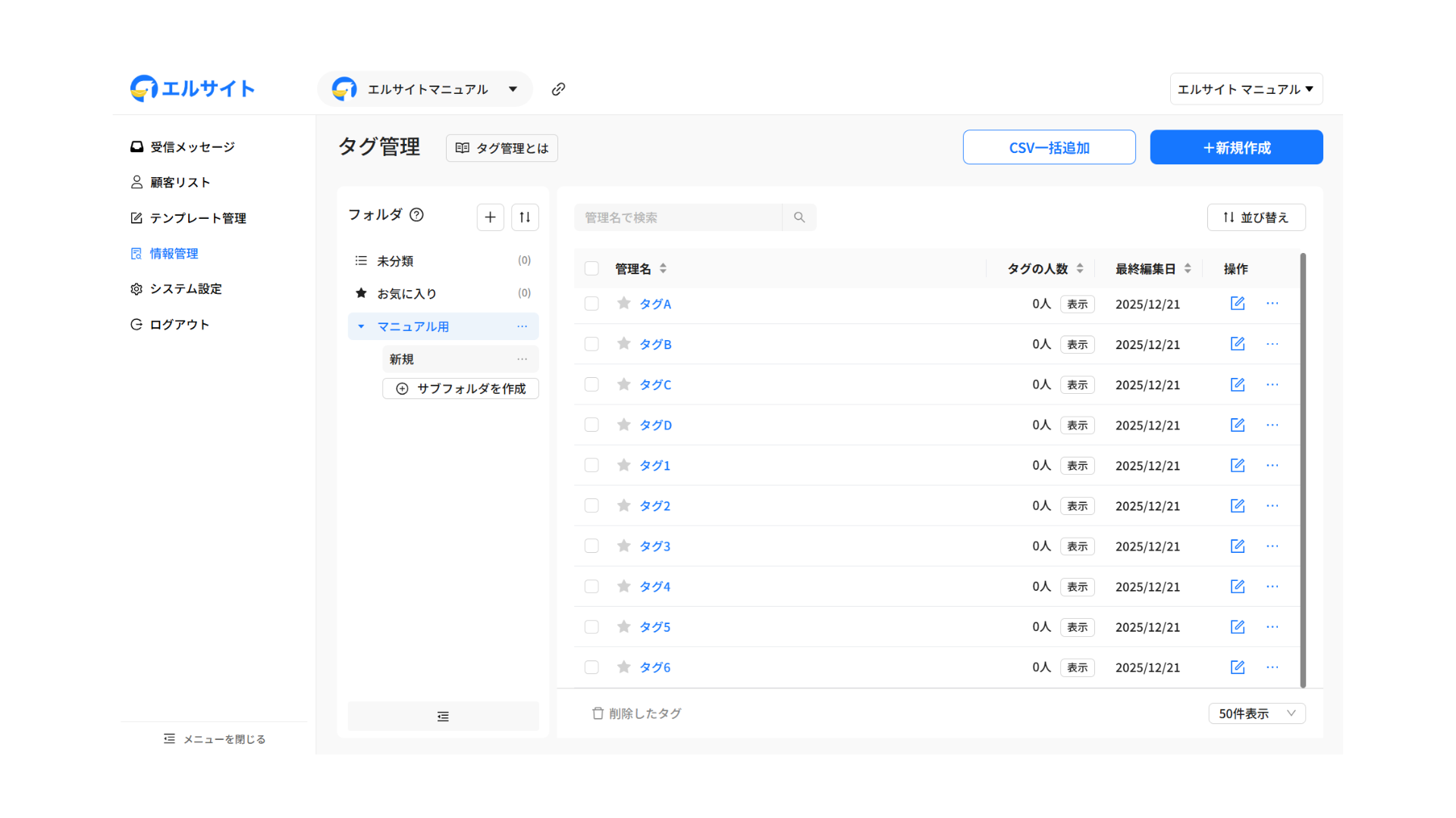 一度に多数のタグを作成する場合は、CSV一括追加機能をご利用ください。
