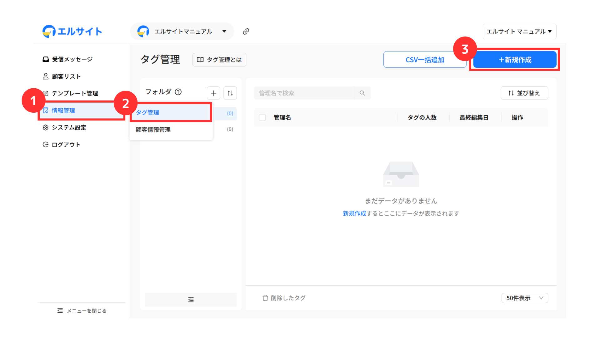 エルサイト内でタグ付けを行う場合は、以下2通りの方法で可能です。