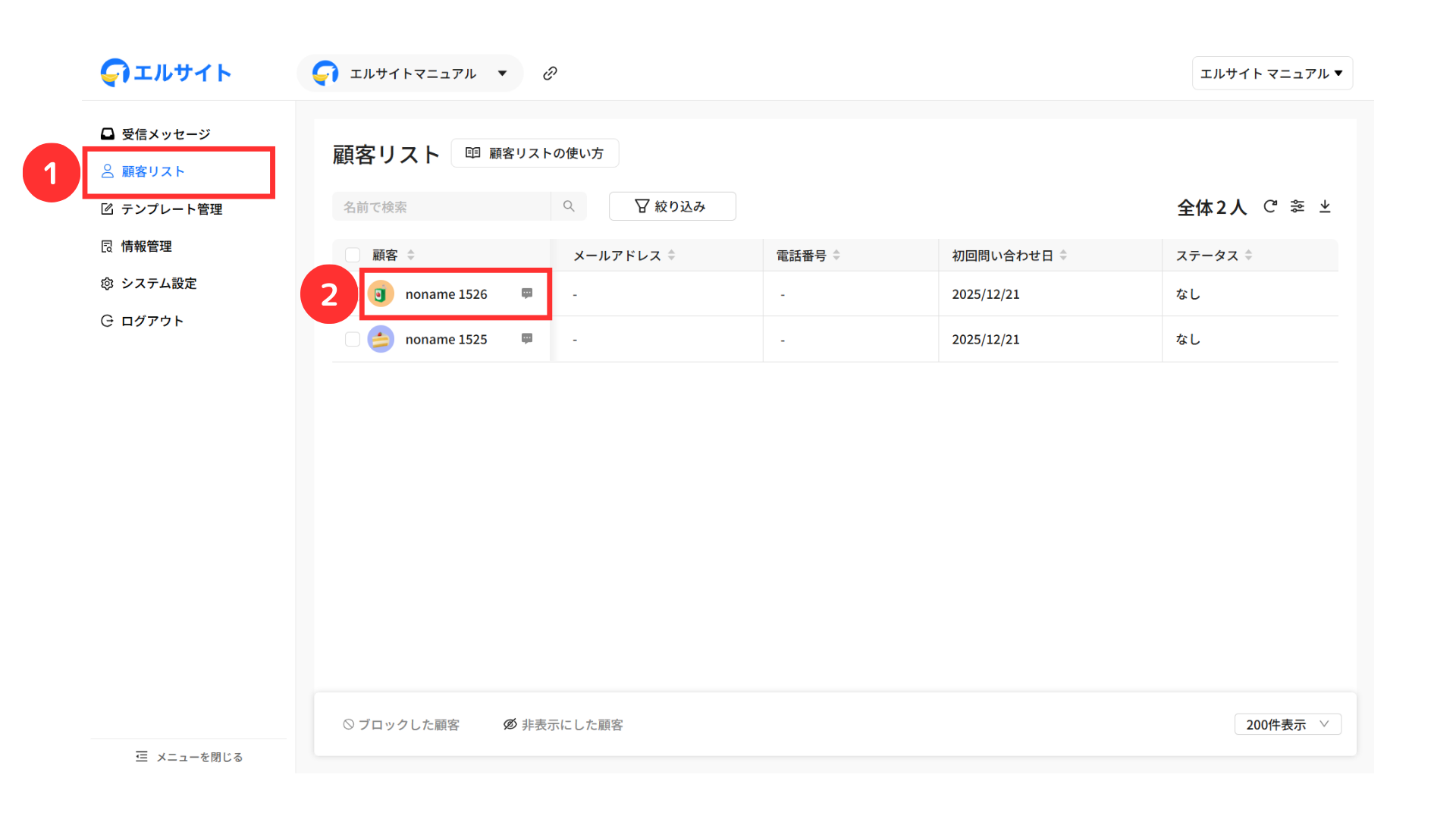 ①「顧客リスト」を選択
