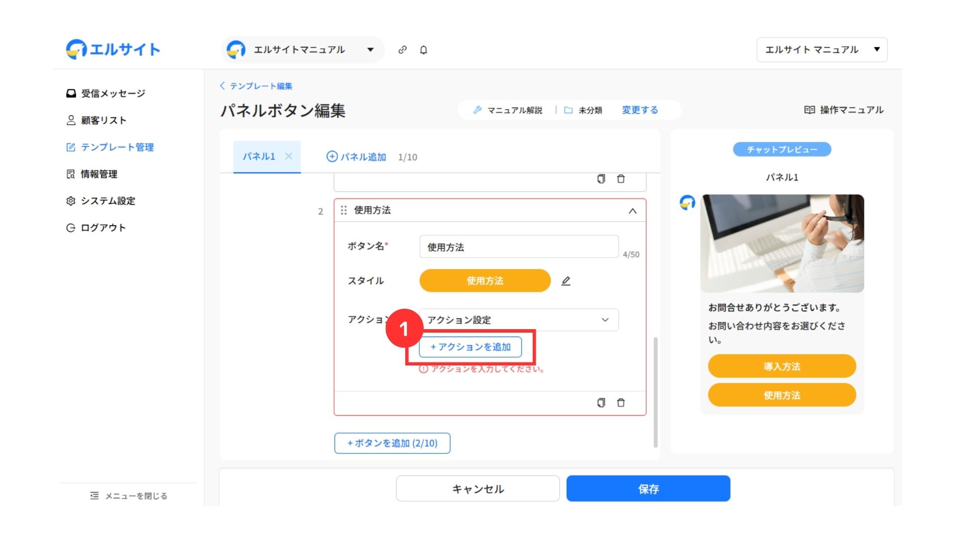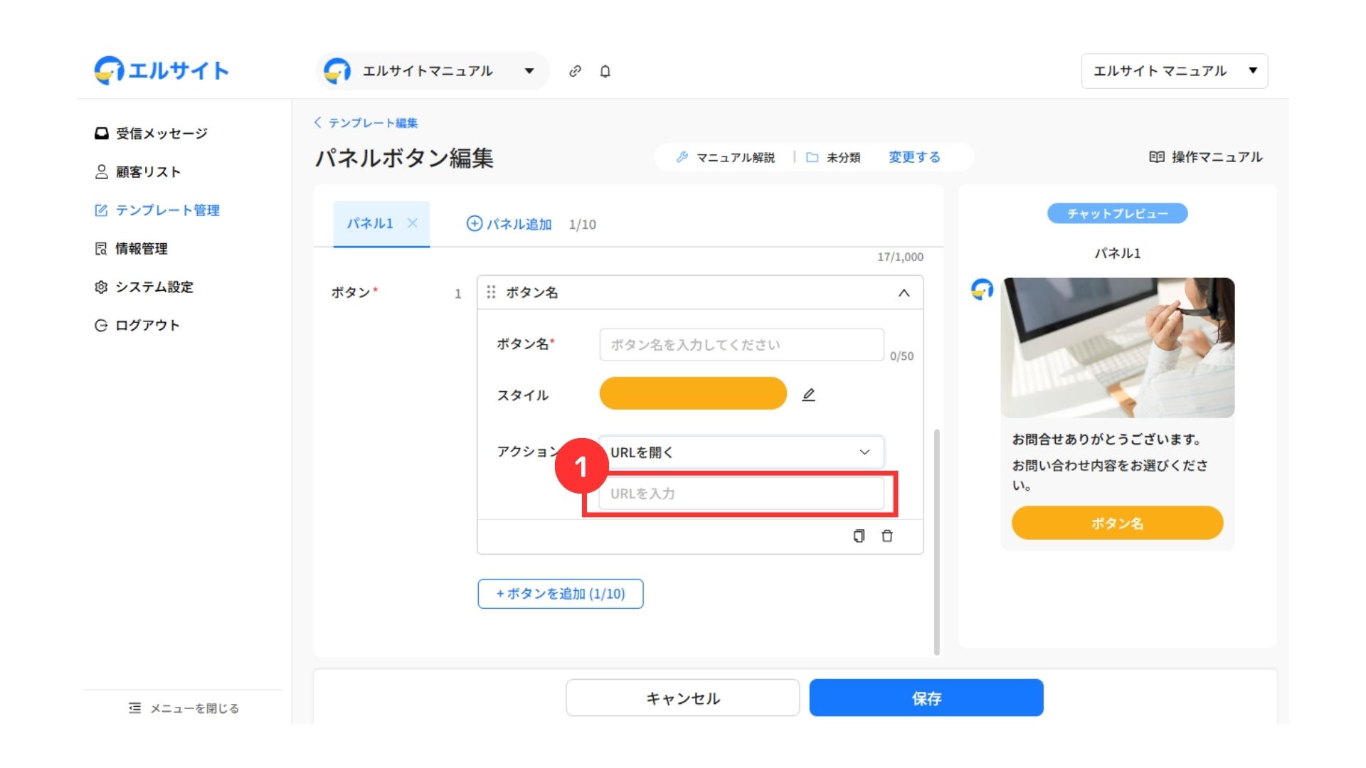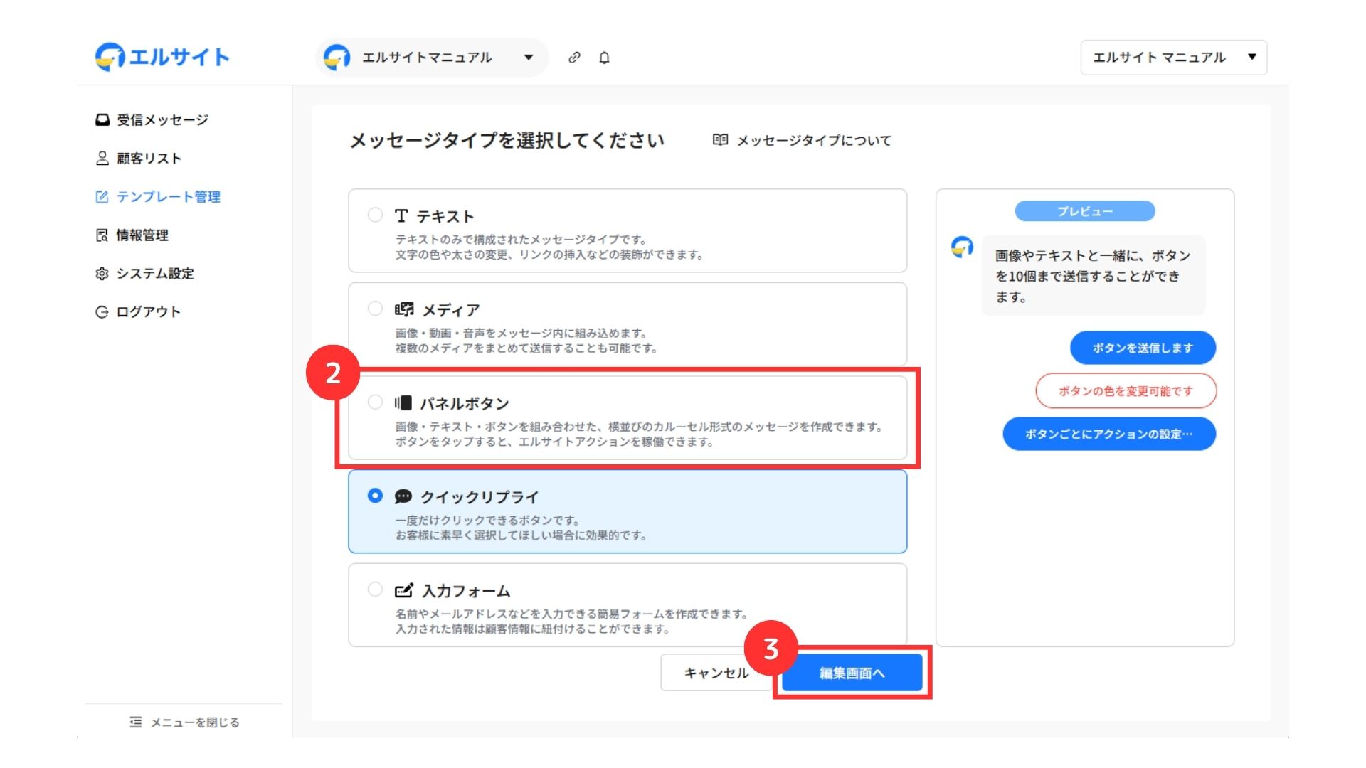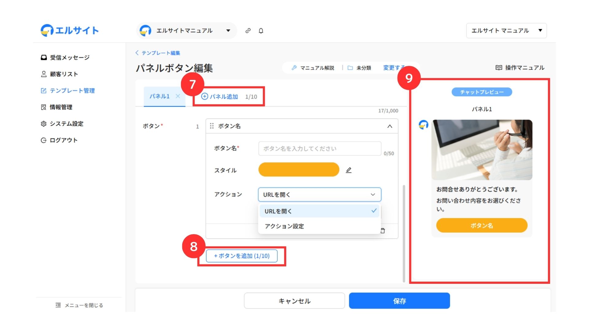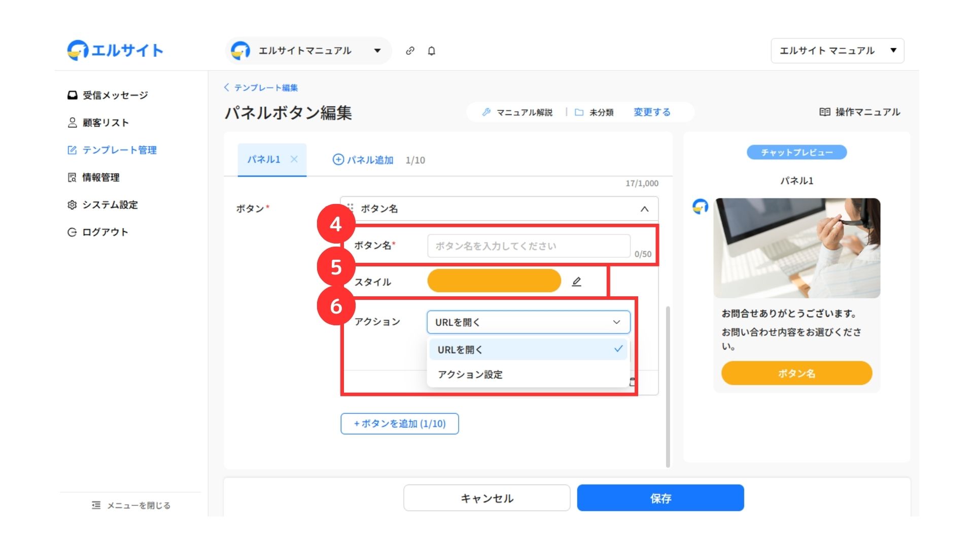 パネルボタンは、テキスト・画像・選択肢を1度のメッセージで送信できます。