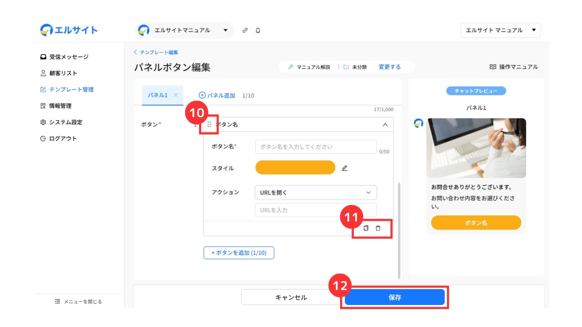⑩ドラッグ&ドロップでボタンの表示順を変更可能