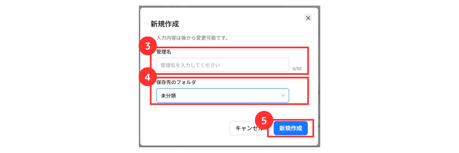 アクションにて、「アクション設定」を選択した場合は以下のとおりです。