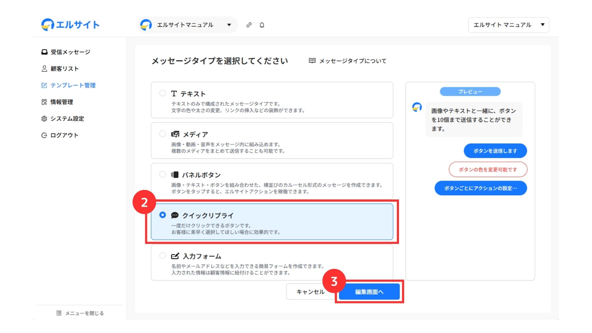 クイックリプライは、一度だけクリックできるボタンを使えるメッセージです。